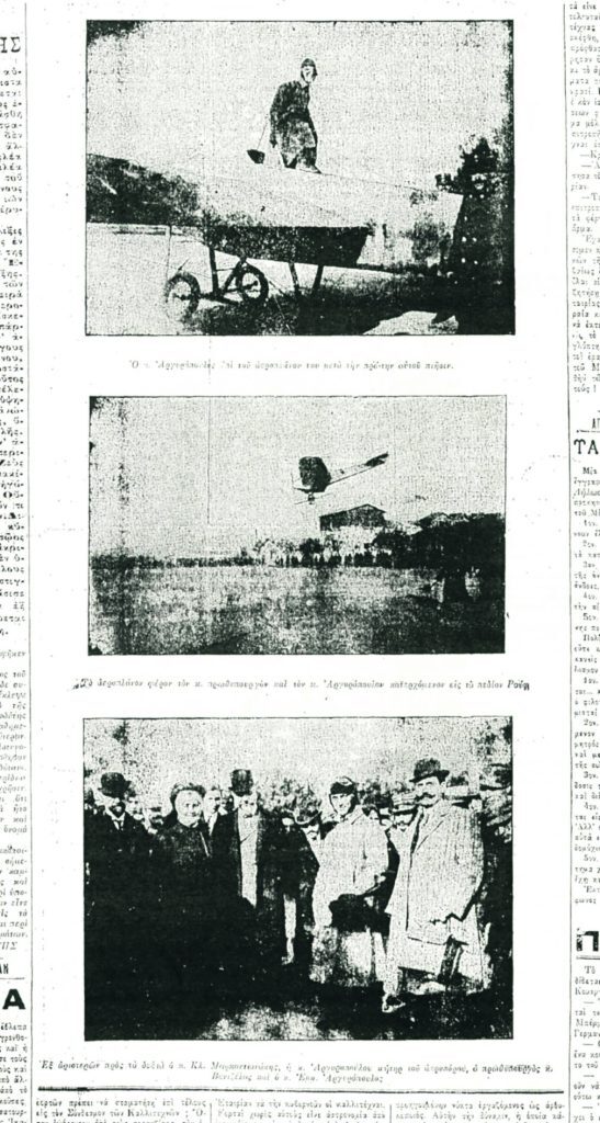 Ετσι, στις 8:10 το πρωί ο Αργυρόπουλος φωνάζοντας «ελεύθερος» απογειώνει το αεροπλάνο του, υπό τις επευφημίες του πλήθους, ανάμεσα στους οποίους βρίσκονται ο βασιλιάς Γεώργιος Α’ και ο πρωθυπουργός Ελευθέριος Βενιζέλος. Η πτήση, που παρότι διαρκεί μόλις 16 λεπτά, σηματοδοτεί τη γέννηση της ελληνικής αεροπορίας. Μία ώρα αργότερα γίνεται και μια δεύτερη, με συνεπιβάτη αυτή τη φορά τον ίδιο τον τολμηρό πρωθυπουργό Βενιζέλο. Το αεροπλάνο διαγράφει μερικούς κύκλους πάνω από τον χώρο απογειώσεως σε ύψος 80 μέτρων και προσγειώνεται ύστερα από 4 λεπτά, σε μια πτήση που μοιάζει περισσότερο με αγώνα επίδειξης.
