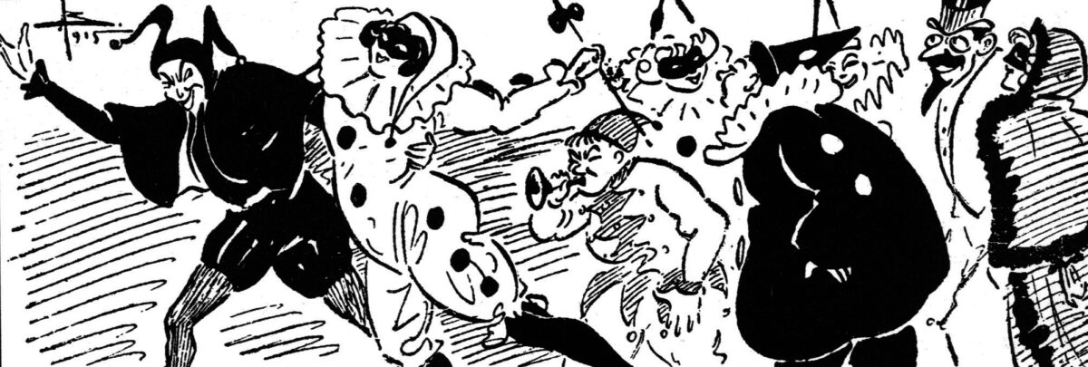 Αλλη φορά παρουσιάζει στο αποκριάτικό του άρμα το σκανδαλώδες κίνημα της εποχής «σερκλ ντιστενγκέ». Το 1914 σχολιάζει την παράδοση της Κορυτσάς στην Αλβανία έχοντας στο κάρο του ένα φέρετρο που από τη μία πλευρά γράφει Αργυρόκαστρο κι από την άλλη Κορυτσά, κάτι που τον οδηγεί σε φυλάκιση δύο εβδομάδων. Σε αντίστοιχη θέση βρίσκεται κι άλλοτε λόγω της δηκτικής του σάτιρας. Στις Αποκριές του 1915 επιστρέφει στον ρόλο του καταστηματάρχη, όταν με ειδοποίησή του στον Τύπο ζητά από το κοινό να τον προτιμήσει για τα θαλασσινά εδέσματα της Καθαράς Δευτέρας: «Προσοχή! Οστρακομυδοφάγοι, να προμηθευτείτε όστρακα και μύδια Χαλκίδος διότι θα κομίσουν τοιαύτα και εκ Πρεβέζης και εκ Στυλίδος καθ’ όλα ομοιάζοντα με της Χαλκίδος εξωτερικώς, κατά την γεύσιν όμως είναι πολύ διαφορετικά. Προσοχή λοιπόν να αγοράσετε γνήσια όστρακα Χαλκίδος τρεις ώρες εξελθόντα εκ της θαλάσσης».