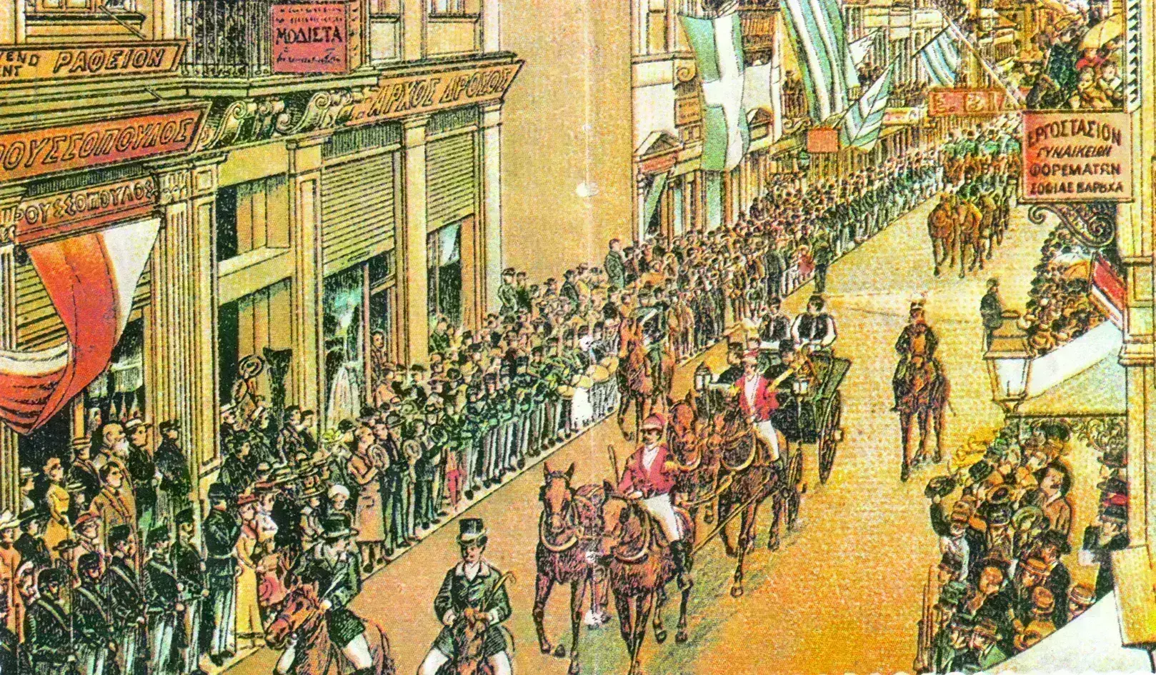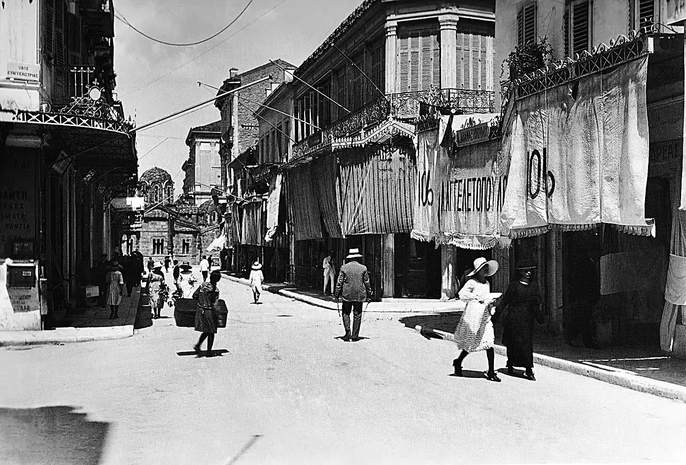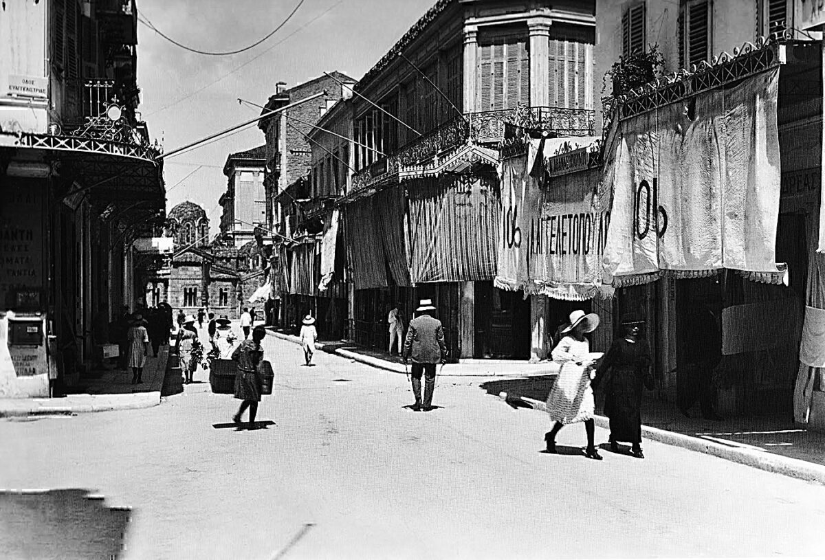 Η εβδομαδιαία εφημερίδα «Ελλάς» παρουσιάζει σε άρθρο της το 1909 τη νέα διαμορφωμένη πραγματικότητα: «Οι βιτρίνες της φιλοτιμούνται να μας παρουσιάζουν, όπως εις τας παρισινάς αι της οδού της Ειρήνης, ό,τι ωραιότερον επινόησεν η εφετινή μόδα: τα πλέον παράξενα σχήματα καπέλων, τα καλύτερα εις ποιότητα γουναρικά, και οι Ατθίδες μας τη διασχίζουν, πετιούνται από το ένα πεζοδρόμιο στο άλλο, χωρίς να φοβούνται πλέον, χάρις εις το… θαύμα της ασφαλτοστρώσεως, να λασπώνουν τους νταντελένιους ποδόγυρούς των».