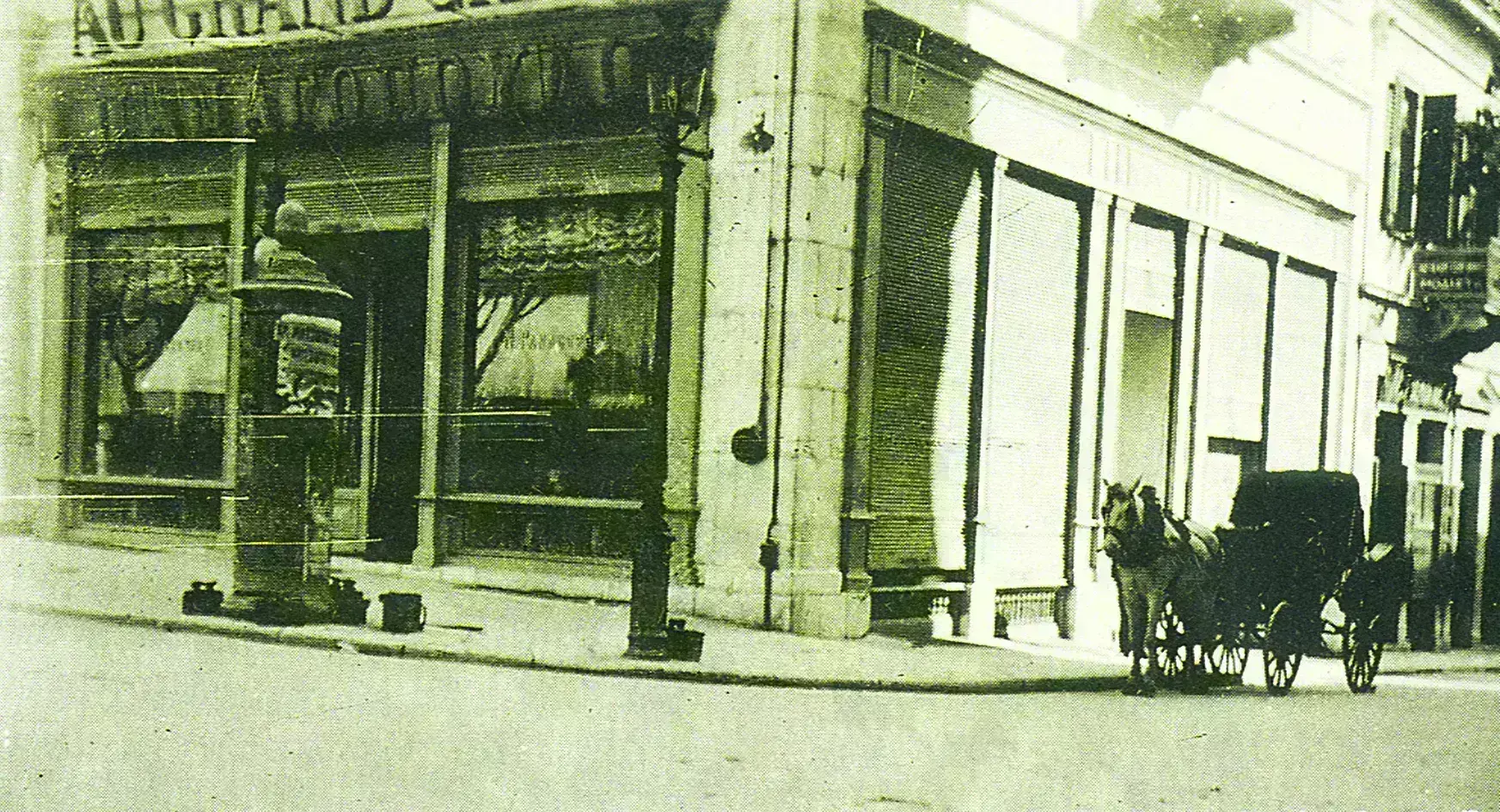 «Καίτοι ήτο εισέτι η έκτη της πρωίας, όλα τα πέριξ εμπορικά ήσαν ανοιχτά: το σαγματοποιείον του Πέτρου Μπάσιου, το υαλο-λαμποπωλείον των υιών Γ. Πίκρα, το ζαχαροπλαστείον του Παύλοβιτς, το κιβωτοποιείον Ν. Δαρέ, το φαρμακείον κ. Ολυμπίου και το καπνοπωλείον “Εις τα καπνά Τουρκίας και Ελλάδος”» γράφει στη δύσκολη καθαρεύουσά του ο Σπανδωνής.