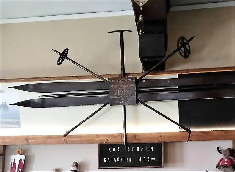Ο Κωνσταντίνος Ελευθερουδάκης, ένας πρωτοπόρος του αθλήματος, έφερε τα πρώτα ζευγάρια σκι στην Ελλάδα στα τέλη του 19ου αιώνα. Σήμερα, το ιστορικό αυτό ζευγάρι εκτίθεται στο καταφύγιο Μπάφι στην Πάρνηθα, μαρτυρώντας την μακρά ιστορία του χειμερινού αθλητισμού στην περιοχή.