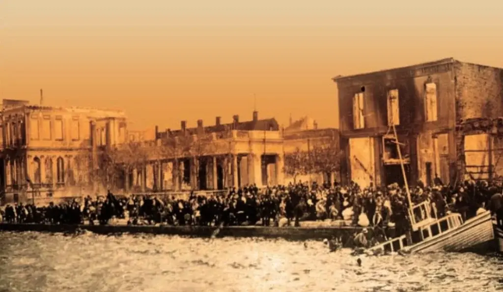 Η κοσμοπολίτικη Σμύρνη μετατρέπεται σε κόλαση όπου τουρκικός στρατός, Τσέτες και ομάδες ατάκτων σκορπίζουν τον θάνατο στον άμαχο πληθυσμό. Οι δρόμοι γεμίζουν με πανικόβλητο κόσμο που -συνωστίζεται κατά κάποιους σφαγιάζεται κατά περισσότερους- στην παραλία της Σμύρνης η οποία γεμίζει πτώματα. Την ίδια τύχη έχουν όσοι ζητούν προστασία σε χώρους που ο πολιτισμένος κόσμος έχει θεσπίσει ως άσυλο. Οκτακόσιοι σφάζονται στην Καθολική Μητρόπολη, χίλιοι τριακόσιοι στο Αμερικάνικο Κολέγιο, χιλιάδες στο νεκροταφείο της πόλης. Τις εικόνες αποκάλυψης της Κεμαλικής θεωρίας :“Η Τουρκία στους Τούρκους” συμπληρώνουν λεηλασίες, εξευτελισμοί και βιασμοί. Πολλές γυναίκες κρύβονται μέσα στα μνήματα, ενώ άγνωστος είναι ο αριθμός εκείνων που αυτοκτονούν πέφτοντας αγκαλιά με τα μωρά τους στα βράχια της περιοχής Πετρωτά.