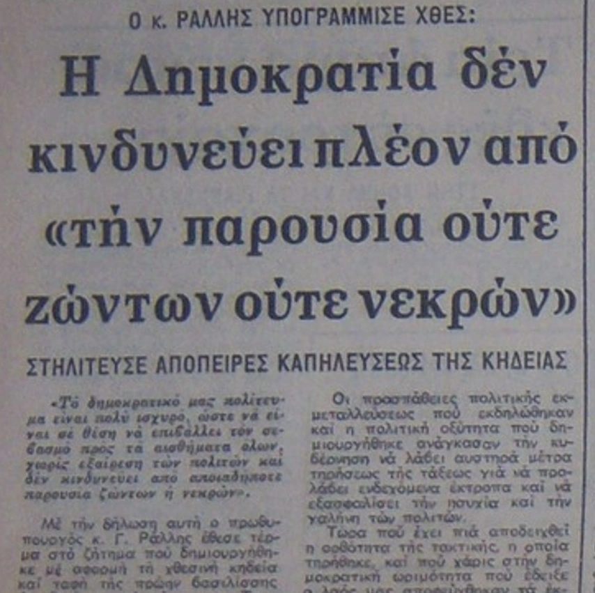 Ο τότε πρωθυπουργός Γεώργιος Ράλλης μαθαίνει το συμβάν στις 5 το απόγευμα του Σαββάτου όταν του τηλεφωνεί στο σπίτι ο ίδιος ο τέως βασιλιάς αναφέροντάς του ότι η εκφρασμένη επιθυμία της μητέρας του ήταν να ταφεί στο κοιμητήριο στο Τατόι δίπλα στο σύζυγο της πρώην βασιλιά Παύλο. Ο Ράλλης τον διαβεβαιώνει ότι η κηδεία θα γίνει εδώ και δεν θα ακολουθηθεί το παράδειγμα προηγούμενων βασιλέων που δεν επιτράπηκε η ταφή τους εδώ (Όθωνας- Αμαλία- Κωνσταντίνος Α΄). Εξάλλου, έχοντας ελληνική υπηκοότητα και προσωπική περιουσία στη χώρα η πρώην βασιλική οικογένεια έχει κάθε δικαίωμα να τελέσει την κηδεία χωρίς να ζητήσει κάποια ειδική άδεια.