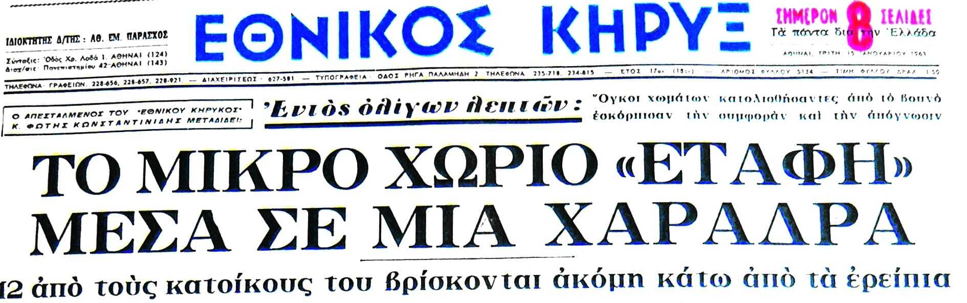 Ολα αυτά μέχρι τα μέσα Ιανουαρίου του 1963, που η φύση έχει άλλα σχέδια. Είναι Κυριακή, όταν το Μικρό Χωριό, που είναι χτισμένο σε υψόμετρο 800 μέτρων στην πλαγιά του όρους Χελιδόνα, πλήττεται από σφοδρή κακοκαιρία με συνδυασμό ανεμοθύελλας, καταρρακτώδους βροχής και χαλαζιού. Δεν είναι η πρώτη φορά που συμβαίνει κάτι τέτοιο, αλλά οι κάτοικοι είναι ανήσυχοι, γιατί ήδη από το προηγούμενο βράδυ ακούν περίεργους υπόκωφους ήχους. Στις 8.20 το πρωί, όταν οι χωριανοί βρίσκονται στον κυριακάτικο εκκλησιασμό, ακούγεται ένας τρομερός ορυμαγδός συνοδευόμενος από βουητό. Οσοι τολμούν να βγουν από τα σπίτια τους βλέπουν έντρομοι το βουνό, που βρίσκεται πάνω από τα κεφάλια τους, να διαλύεται, τεράστιους βράχους να αποκολλώνται από αυτό και μαζί με τόνους χωμάτων να κατευθύνονται στο χωριό.