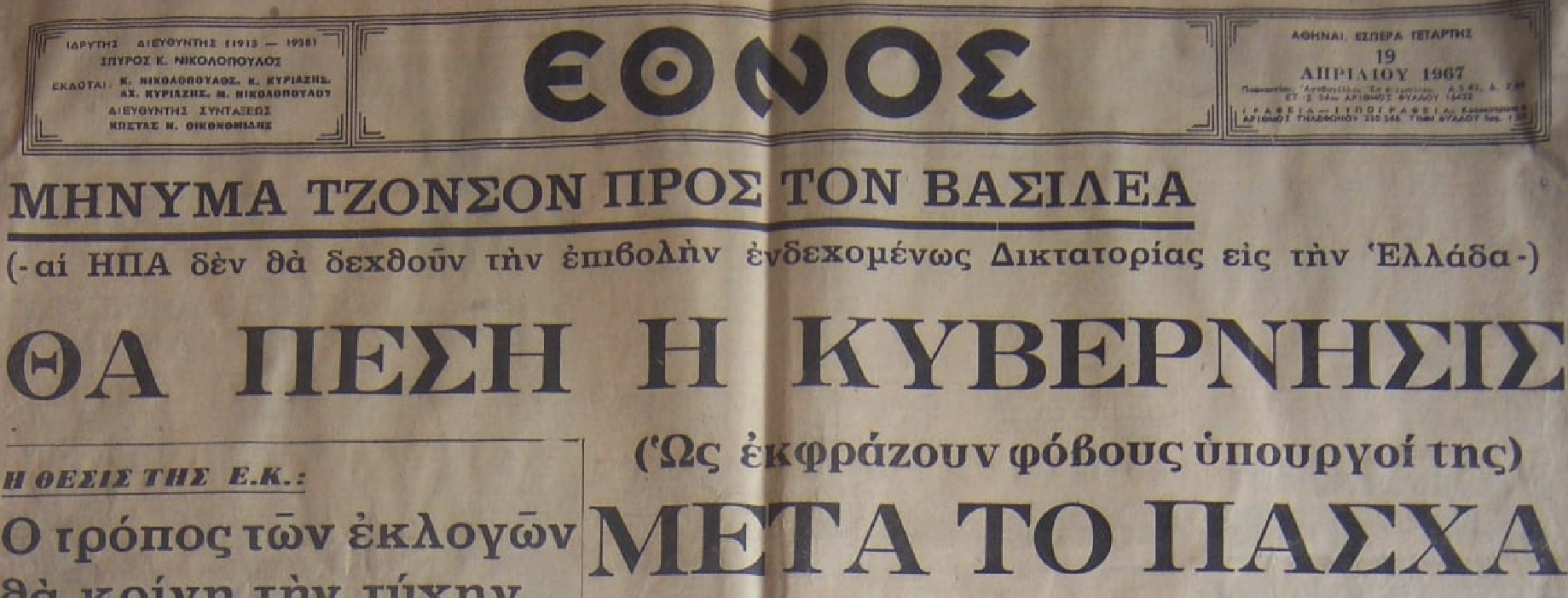 Τα πρώτα τανκ στους δρόμους της πρωτεύουσας εμφανίζονται λίγο μετά τα μεσάνυχτα της 21ης Απριλίου. Ενδεικτικά του γενικού αιφνιδιασμού είναι τα δύο παρακάτω περιστατικά. Κάποιες ώρες πριν, στη δίκη των δημοσιογράφων Γιάννη Βούλτεψη και Δημήτρη Σαπρανίδη, ο εισαγγελέας της έδρας επαναλαμβάνει συνεχώς ότι Χούντα ακούει και Χούντα δεν βλέπει. Παράλληλα, εκείνες τις ημέρες η “Αυγή” δημοσιεύει σε συνέχειες άρθρα με τίτλο “Γιατί δεν πρόκειται να γίνει δικτατορία”. Το τρίτο μέρος πρόκειται να δημοσιευτεί στο φύλλο της 21ης Απριλίου, το οποίο φυσικά δεν κυκλοφορεί ποτέ, αφού την ίδια ημέρα η εφημερίδα κλείνει και συλλαμβάνεται το προσωπικό της…