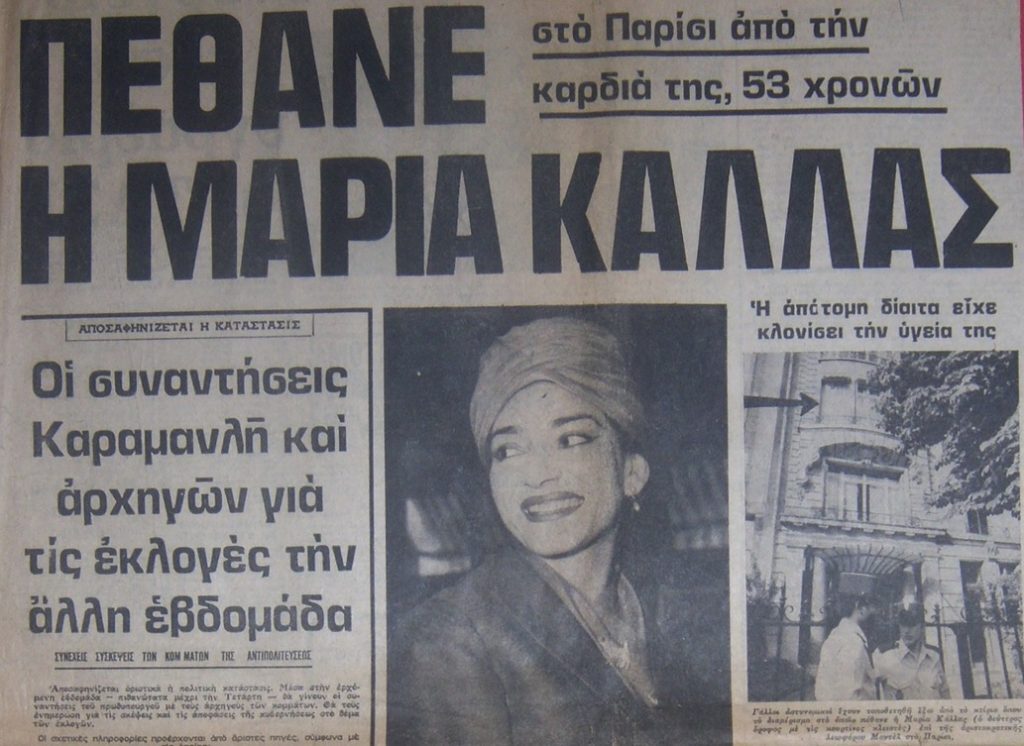 Έτσι, η κορυφαία υψίφωνος του προηγούμενου αιώνα, αφήνει πίσω την μυθική της πορεία και τις κλασικές της ερμηνείες στα μεγαλύτερα θέατρα του κόσμου από την Σκάλα του Μιλάνου στο αρχαίο θέατρο της Επιδαύρου, τις διθυραμβικές κριτικές, τον δεκαετή γάμο της με τον βιομήχανο Τζιοβάνι Μπατίστα Μενεγκίνι, τη θυελλώδη σχέση με τον άλλο μεγάλο Έλληνα της εποχής Αριστοτέλη Ωνάση, ώστε να κηδευτεί τέσσερις ημέρες μετά στον Ελληνορθόδοξο Καθεδρικό Ναό του Αγίου Στεφάνου στο Παρίσι, να αποτεφρωθεί, και δύο χρόνια αργότερα οι στάχτες της να σκορπιστούν στο Αιγαίο Πέλαγος.