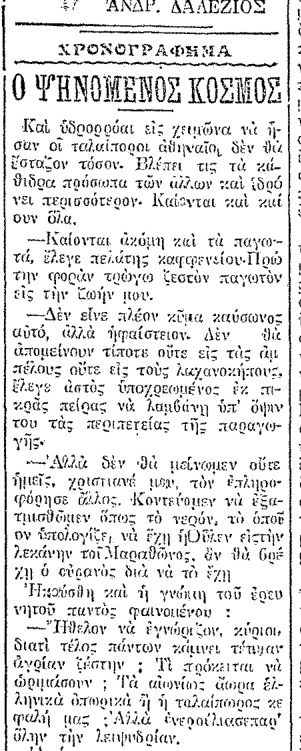 Η πραγματικότητα είναι ότι εκατό και πλέον χρόνια πριν οι Έλληνες με χαμηλότερες θερμοκρασίες ζούσαν καλοκαίρια με πολύ ιδρώτα, σκόνη, βασανιστικά βράδια με συνοδεία κουνουπιών… Για να το πούμε καθαρά: δεν υπήρχε διαφυγή από τη ζέστη. Μιλάμε για μια χώρα που από τον Μάιο μέχρι τον Σεπτέμβριο μετατρεπόταν σ’ ένα φυσικό καμίνι, με τη λέξη «δροσιά» να ήταν σχεδόν άγνωστη, αν δεν ήσουν πλούσιος ή αν δεν έμενες σε κάποιο βουνό.