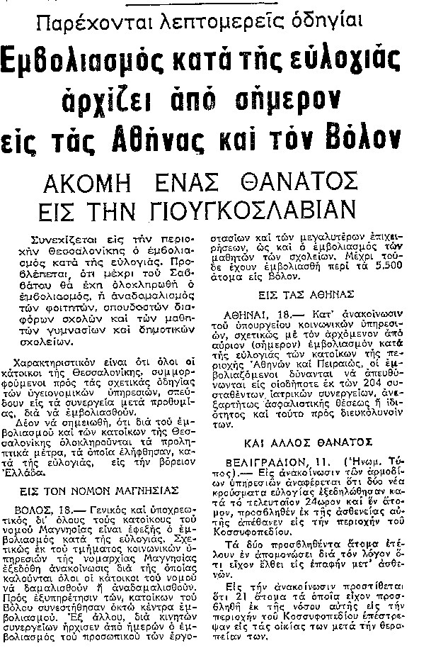 Ο εμβολιασμός σημειώνει μεγάλη επιτυχία και γίνεται χωρίς να παρουσιαστεί κανένα πρόβλημα ή αμφισβήτηση της διαδικασίας και της αποτελεσματικότητας του εμβολίου. Ειδικά σε νομούς που συνορεύουν με τα βόρεια σύνορά μας, όπως η Φλώρινα, ο εμβολιασμός φτάνει στο 90-95% του πληθυσμού και σύμφωνα με τον νομίατρο της περιοχής κ. Βραματόπουλο, επιδιώκεται να είναι καθολικός «…προκειμένου να επιτευχθεί ένα τοίχος ανοσίας κατά της νόσου».