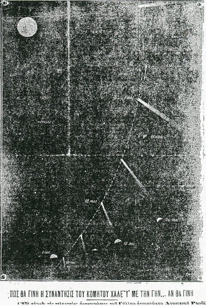 Η τελική αναμέτρηση με την πραγματικότητα γίνεται το βράδυ της 5ης Μαΐου 1910 (σ.σ. με το παλιό ημετολόγιο) όταν οι πολίτες όλου του κόσμου ξενυχτούν μέχρι τα ξημερώματα κοιτάζοντας τον ουρανό, ενώ η Αθήνα ζει το πρώτο μεγάλο της νυχτερινό πάρτι. Ζάππειο, Σύνταγμα, Φάληρο και οπουδήποτε υπάρχει ακάλυπτος χώρος, κατακλύζονται από μυρμηγκιές κόσμου, με τους περισσότερους να επιλέγουν να απολαύσουν το τέλος σε λόφους, υψώματα και βουνά οπού επικρατούσε το αδιαχώρητο, αφήνοντας ερημωμένα σπίτια και ολόκληρες γειτονιές να φυλάσσονται από σκύλους και γάτους…