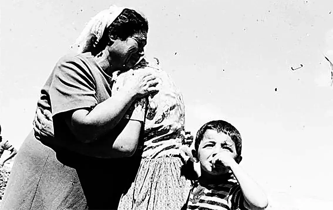 «(…) Κάποιος ήρθε λαχανιασμένος, ο στρατιώτης γιος της κυρίας Δόμνας, της γειτόνισσας, και φώναξε πως είναι Τούρκοι αλεξιπτωτιστές. Δεν ήξερα τι είναι οι αλεξιπτωτιστές. Aραγε, ήταν τα μπαλόνια που φαίνονταν να πέφτουν; Τι ήρθαν να κάμουν; Τι εννοούν “εν Τούρκοι” και γιατί κατεβαίνουν με μπαλόνια; Η γιαγιά Ιφιγένεια, απ’ το Κοιλάνι, έχει γειτόνισσα Τουρκάλα και κάθε πρωί πίνουν καφέ μαζί. Τι σημαίνει “έρκουνται οι Τούρτζοι να μας πιάσουν!”, που φώναζε δυνατά, κλαίοντας, η Δόμνα; Ακολούθησαν στιγμές που δεν βγήκαν ποτέ απ’ τον νου μου… φωνές… πολλές φωνές… “Φύγετε, φύγετε!”, “Τα μωρά”, “Βομβαρδίζουν οι Τούρκοι!”, “Πόλεμος!”, “Τα μωρά… τα μωρά…”», διηγείται και βουρκώνει…