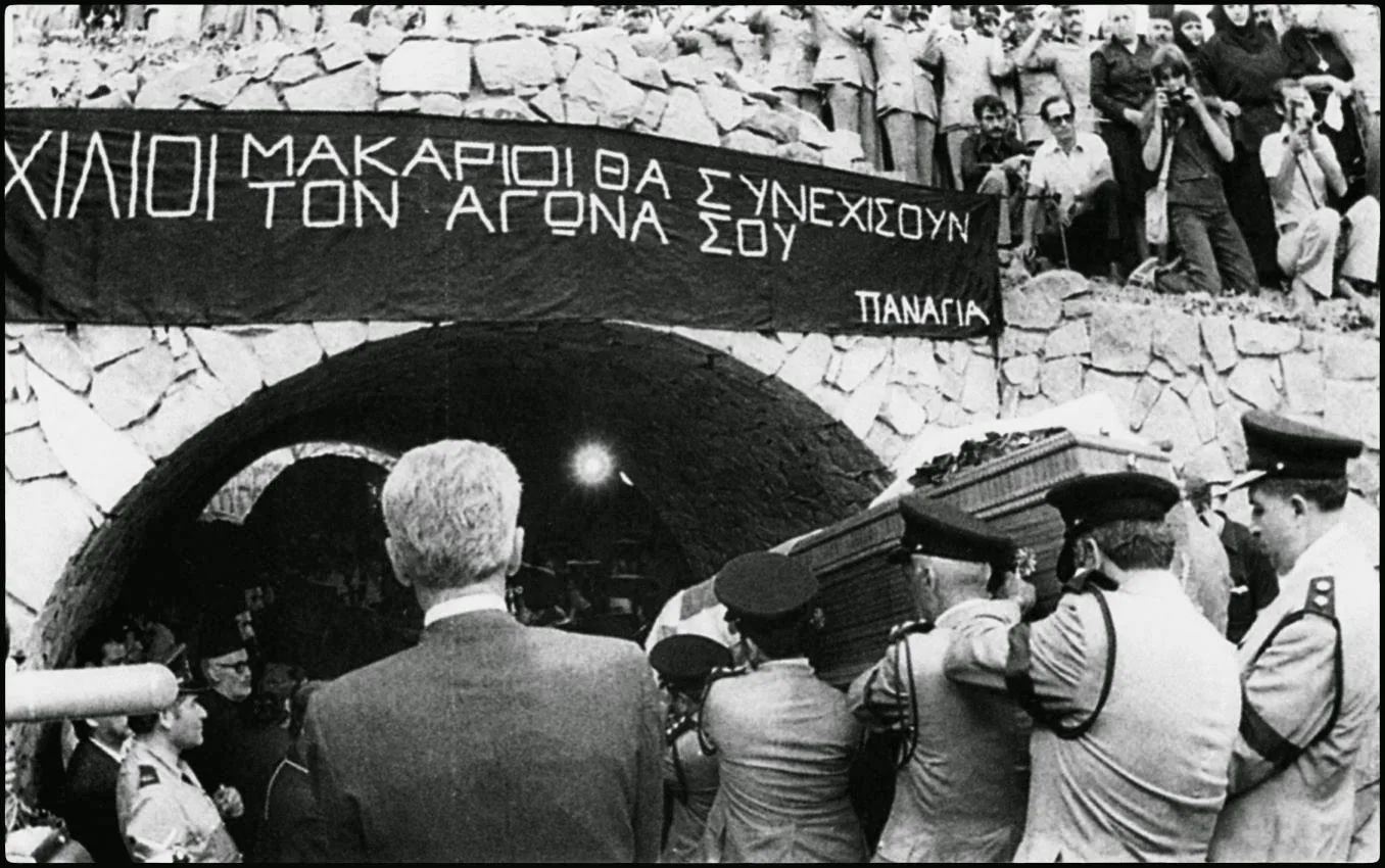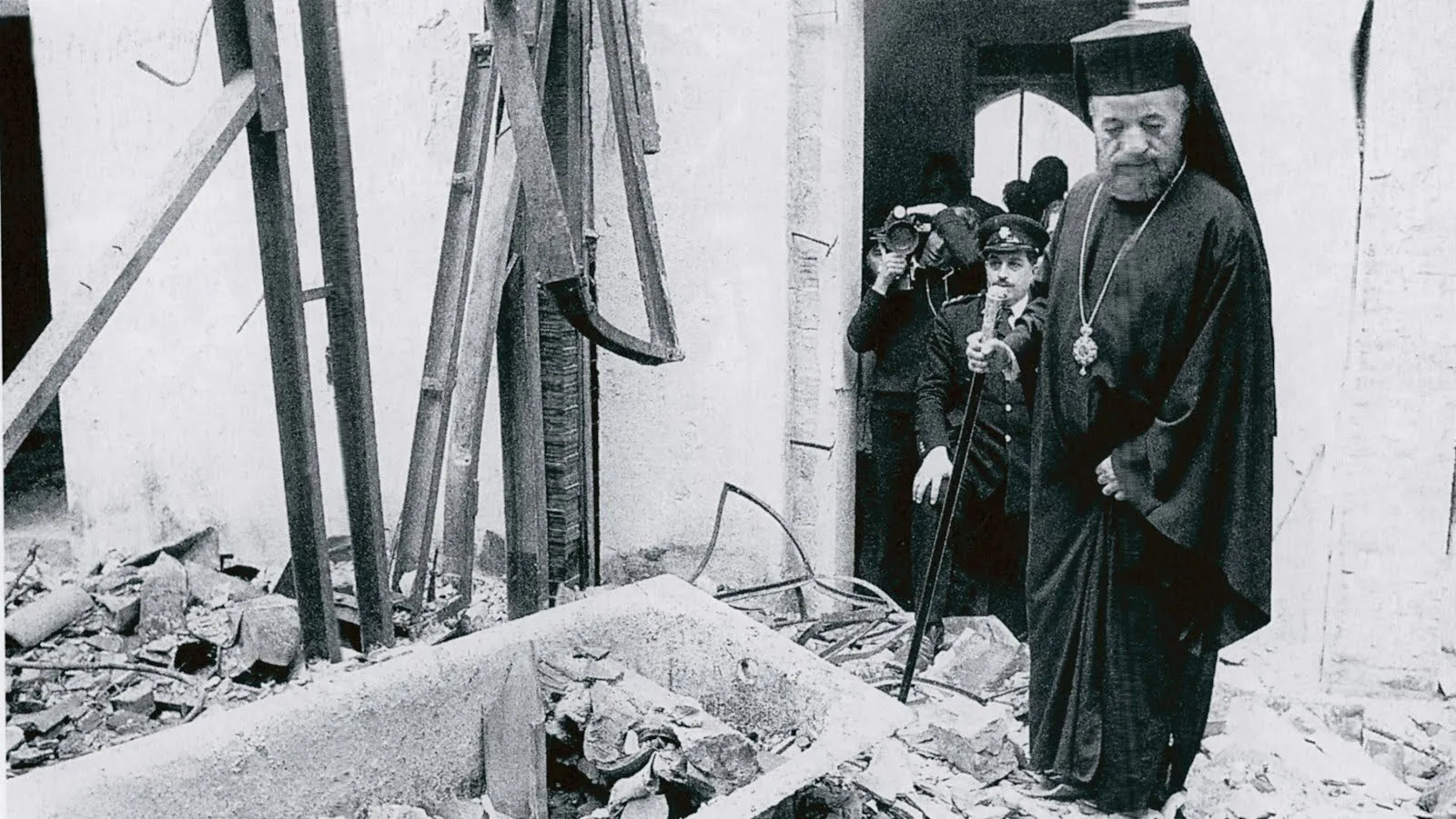 Ο αρχιεπίσκοπος Μακάριος βγαίνει ζωντανός από το βομβαρδισμένο από την χούντα Προεδρικό Μέγαρο, καθώς κι από παλαιότερες απόπειρες δολοφονίας, αλλά τον προδίδει η καρδιά του.