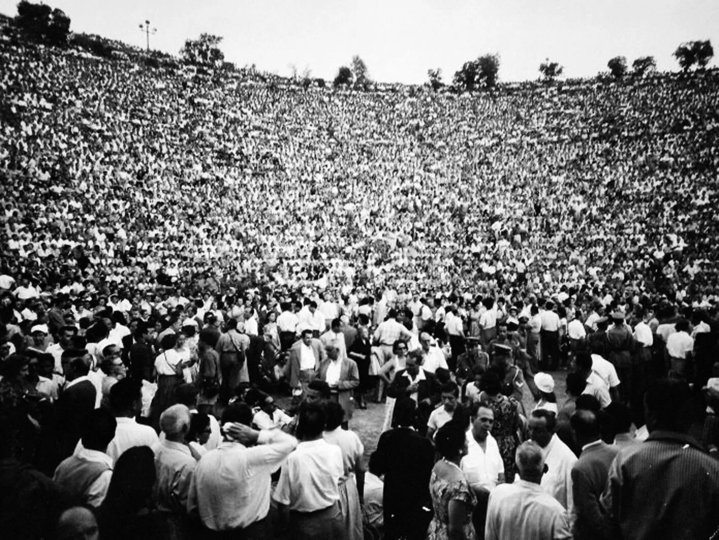 Το ιστορικό αυτό ραντεβού κλείνεται για την Κυριακή 21 Αυγούστου, αλλά ο καιρός έχει άλλη άποψη. Η ψιλή βροχή που ξεκινά το απόγευμα γίνεται αυγουστιάτικη καταιγίδα που μουσκεύει σκηνικά, πανάκριβες τουαλέτες και εντυπωσιακές κομμώσεις, καθιστώντας αδύνατη την έναρξη της παράστασης. Χιλιάδες απογοητευμένοι θεατές διαφεύγουν από τους λασπωμένους δρόμους της περιοχής με πολλούς εξ αυτών να επιστρέφουν βρεγμένοι στα σπίτια τους τα ξημερώματα της επόμενης ημέρας.