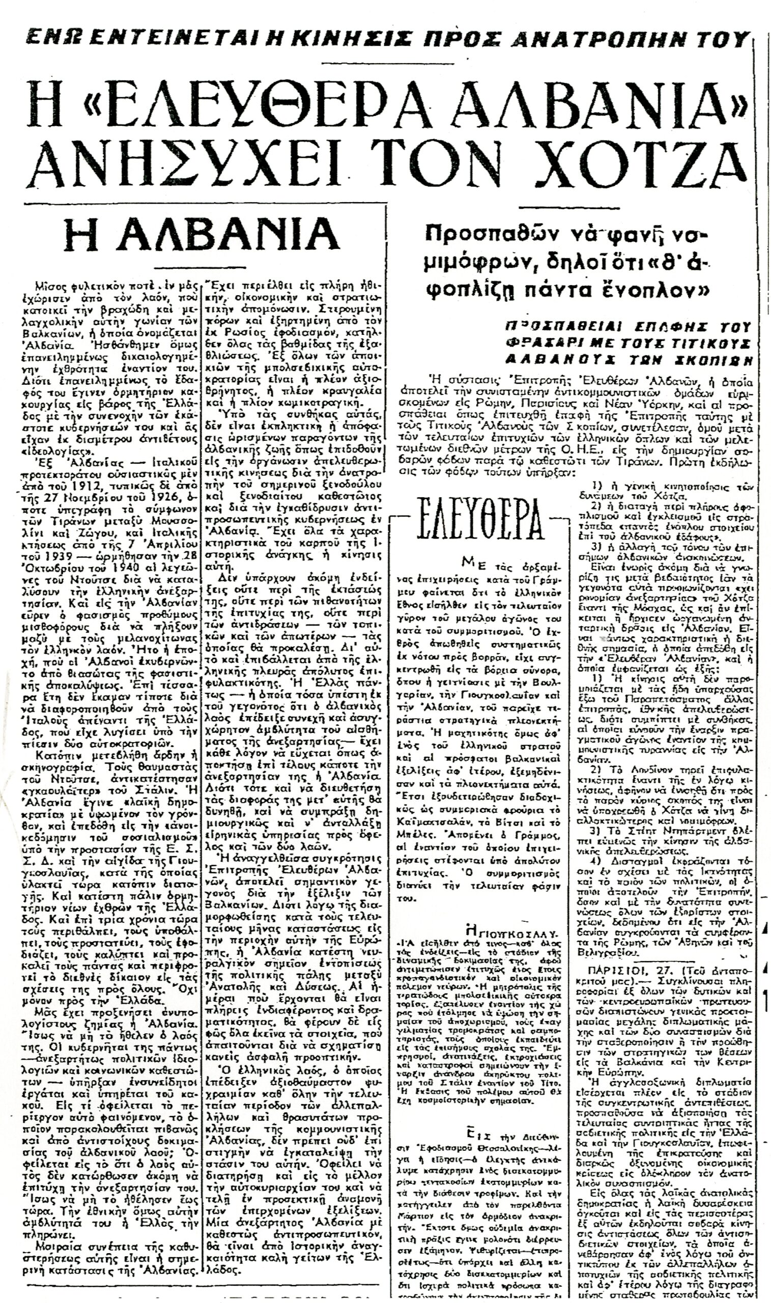 Το καθεστώς Χότζα από την πρώτη στιγμή δημιουργίας του διατηρεί ταραγμένες σχέσεις με τις μεταπολεμικές ελληνικές κυβερνήσεις. Ο τρεις φορές μέσα σε τριάντα χρόνια απελευθερωμένος βορειοηπειρωτικός ελληνισμός, αντί δικαίωσης των αιματηρών αγώνων του εναντίον των δυνάμεων του Άξονα, αντιμετωπίζει σκληρότατες διώξεις. Ειδικά μετά την φιλοκινεζική στροφή του Χότζα και την μετατροπή της Αλβανίας σε αθεϊστικό κράτος, οι διωγμοί είναι χειρότεροι και από αυτούς την περίοδο της Οθωμανικής Αυτοκρατορίας. Εκκλησίες καταστρέφονται ή μετατρέπονται σε αποθήκες και κινηματογράφους που αποθεώνουν το σοσιαλιστικό ιδεώδες, αλλάζουν τα χριστιανικά τοπωνύμια στη Βόρειο Ήπειρο, ενώ πολλά ελληνικά ονόματα μετατρέπονται σε αλβανικά όπως ο Αχιλλέας (Achilleas) που γίνεται Arqile.