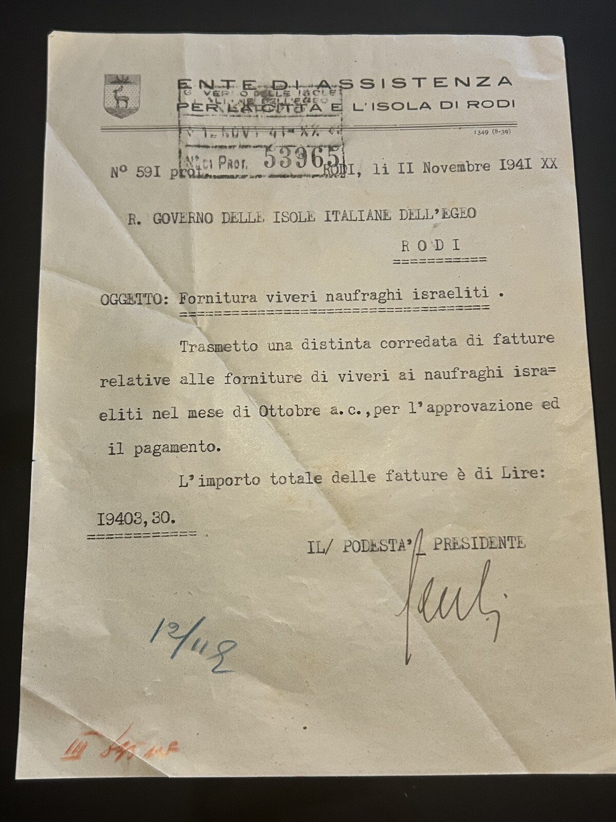 Μετά τη διάσωσή τους, οι ναυαγοί μεταφέρθηκαν στη Ρόδο όπου έμειναν για παραπάνω από έναν χρόνο, αρχικά σε ένα βιαστικά κατασκευασμένο camp σε γήπεδο ποδοσφαίρου προτού στις 25 Δεκεμβρίου εγκατασταθούν στο στρατόπεδο του San Giovanni, απ’ όπου τον Ιανουάριο του 1942 έφυγαν με προορισμό το στρατόπεδο Ferramonti, στη νότια Ιταλία, όπου παρέμειναν ως το τέλος του πολέμου.
