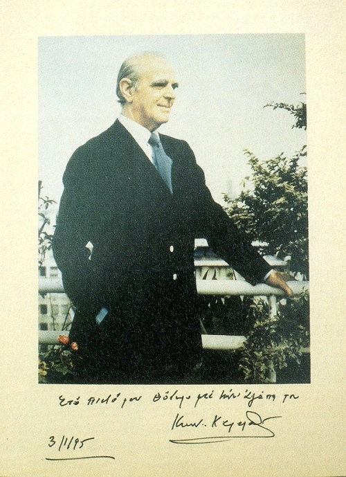 Παρότι βρίσκονται βρίσκονται μαζί σχεδόν όλες τις ημέρες του χρόνου, η μοίρα θέλει το ιστορικό βράδυ της 24ης Ιουλίου 1974 όπου ο Καραμανλής επιστρέφει εσπευσμένα στην Αθήνα, εκείνος να βρίσκεται στη Μύκονο για να δει την οικογένεια του. Ακόμα κι έτσι όμως βρίσκει τρόπο να βρεθεί πάλι δίπλα του :“Έφυγα με ένα κρις κραφτ για την Τήνο και από εκεί για τον Πειραιά. Ίσα-ίσα πρόλαβα να φτάσω στη “Μεγάλη Βρετανία” πριν τον Πρόεδρο. Στις έξι το πρωί την ώρα που έλυνε τη γραβάτα του με είδε μπροστά του και τρελάθηκε. Και τι δε μου έλεγε. Ιστορικές στιγμές”.