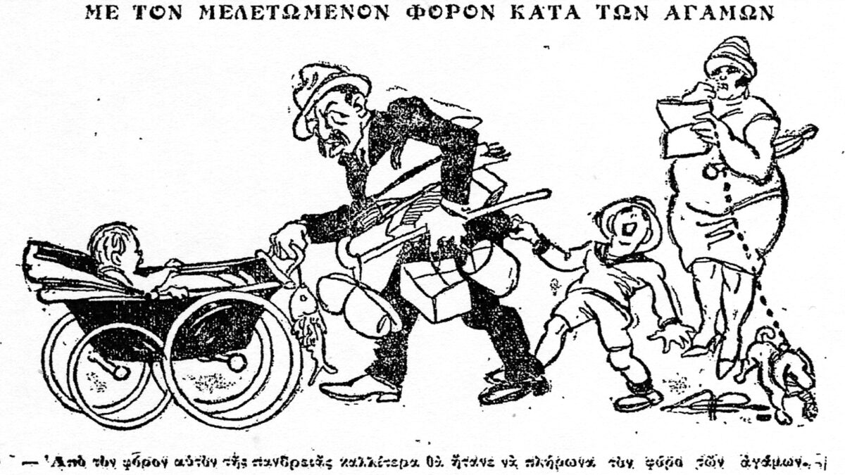 Η συζήτηση για το θέμα ξανανοίγει το 1900 όταν η εφημερίδα «Καιροί» δημοσιεύει την πληροφορία ότι η κυβέρνηση του Γεωργίου Θεοτόκη ήταν έτοιμη να υποβάλει νομοσχέδιο περί φορολογίας των αγάμων έχοντας διπλό στόχο. Αφενός την αύξηση των κρατικών εσόδων και αφετέρου την τόνωση του θεσμού του γάμου. Οι εφημερίδες δεν χάνουν την ευκαιρία να κάνουν την ανάλογη πλάκα: «Εννοείται ότι φόρος είναι και η σύζυγος, αλλά ο φόρος αυτός καταβάλλεται εις τα μοδιστράδικα της οδού Ερμού. Το νομοσχέδιο τούτο θα φέρει επανάστασιν εις τας τάξεις των αγάμων. Ρητώς πλέον η κυβέρνησις επιβάλλει, εν εκ των δύο, ή την φορολογίαν ή τον γάμον. Ο αρνούμενος να κάμει το πρώτον, θα κάμει το δεύτερον. Οι αρχιεπίσκοποι πρέπει να δηλώσουν καθαρά, ποιον εκ των δύο προτιμούν».