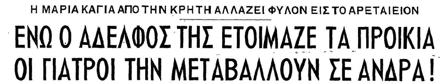 Το επόμενο περιστατικό εξελίσσεται στις αρχές του 1953 στην πρωτεύουσα. Τότε η 17χρονη Μαρία από την Κρήτη νοσηλεύεται για μήνες στο Αρεταίειο νοσοκομείο. Τα δημοσιεύματα της εποχής μιλούν μιλούν για ένα πρόβλημα που ξεκινά από λάθος … διάγνωση της μαμής που βλέποντας τα υποτυπώδη γεννητικά όργανα του βρέφους θεωρεί ότι είναι κορίτσι. Παρότι ντυμένη με κοριτσίστικα ρούχα και έχοντας τις ανάλογες κοτσίδες σταδιακά η “Μαρία” δεν βλέπει τα συνομήλικα κορίτσια μόνο σαν φίλες. Μπαίνοντας στην εφηβεία τα ανδρικά χαρακτηριστικά γίνονται εντονότερα με αποτέλεσμα οι γονείς να σταματήσουν τις ετοιμασίες προίκισης του κοριτσιού και να το φέρουν στην Αθήνα ώστε να κοιταχθεί από γιατρούς.