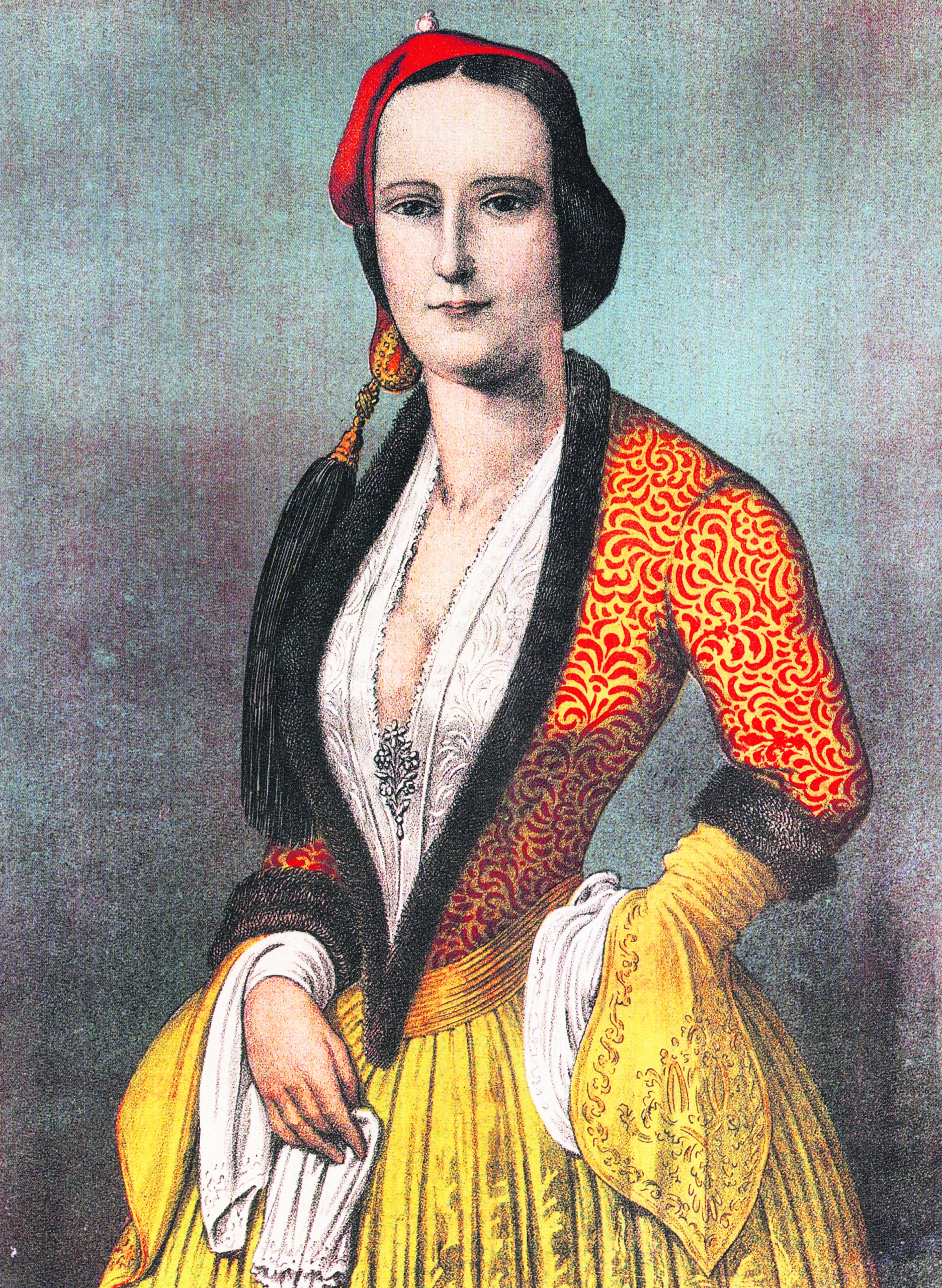 Περιγραφή της βραδιάς έχουμε από την παιδαγωγό και κυρία της Τιμής της Αμαλίας Ιουλία φον Νόρντενφλιχτ, η οποία είναι δηκτική για τα φορέματα και την παρουσία των Ελληνίδων: «Οι ευρωπαϊκές τουαλέτες των ξένων κυριών, φτιαγμένες με εξαιρετική καλαισθησία, σύμφωνα με την τελευταία λέξη της μόδας του Πτι Κυριέ, αποτελούσαν ζωηρή αντίθεση με τις μεταξωτές αμφιέσεις των νεωτεριζουσών Ελληνίδων. Ολομέταξες και χρυσοκέντητες, αλλά χωρίς ίχνος καλαισθησίας πάνω τους. Το μόνο τους προσόν ήταν ένας αλλόκοτος και χωριάτικος συνδυασμός χρωμάτων. Μερικές από τις προσκεκλημένες είχαν στολισμένα τα μαλλιά τους με φτερά κι άλλες φορούσαν ενδυμασίες ολόκληρες με δαντέλα. Εβλεπε όμως κανείς εκεί μέσα, στο πολύχρωμο μωσαϊκό, πολλές Ελληνίδες, νέες και ηλικιωμένες, με τη γραφική ενδυμασία. Οι περισσότερες ήταν νησιώτισσες και μία από αυτές, Υδραία στην καταγωγή, ήταν τύπος αρχαίας καλλονής. Αλλες πάλι κυρίες φορούσαν χρυσοΰφαντες τουαλέτες πολύ ιδιόρρυθμες».