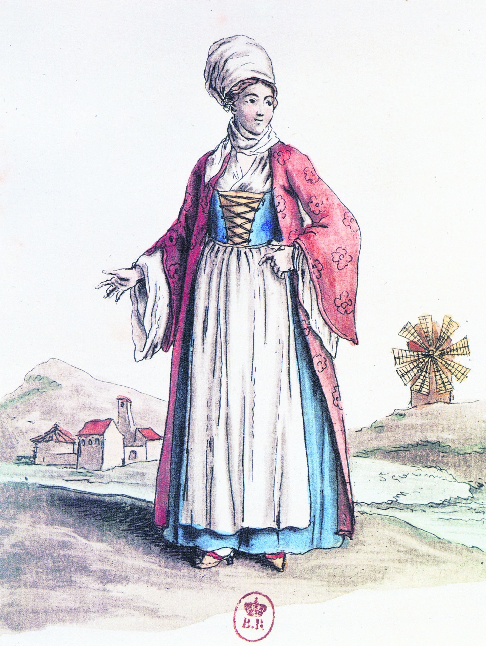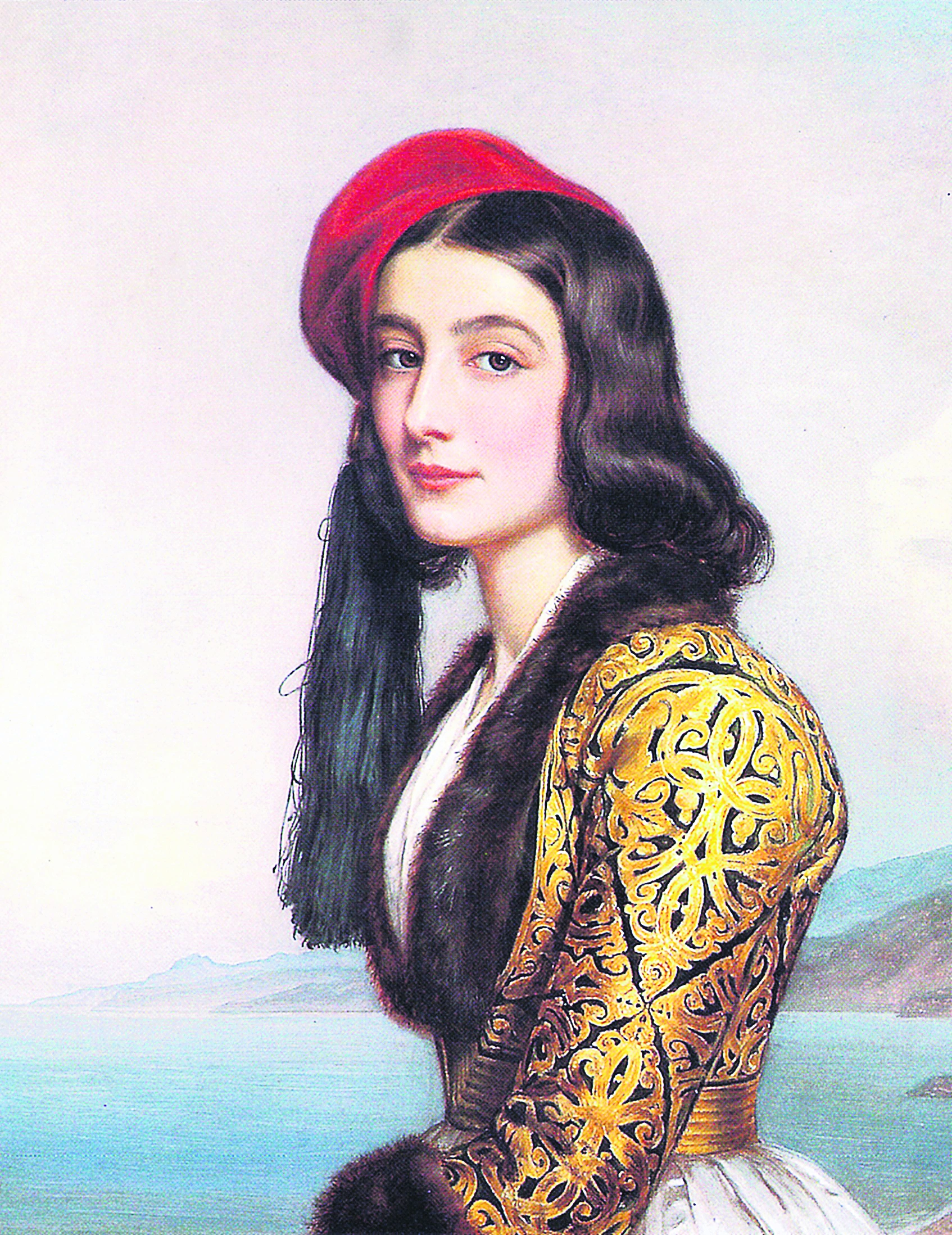 Η Αμαλία κάθεται σε ένα χρυσοκέντητο ντιβάνι φορώντας παραδοσιακή τοπική ενδυμασία, ντύσιμο που ενθουσιάζει το ελληνικό κοινό που εκφράζει τον ενθουσιασμό και τον θαυμασμό του για τη νεαρή βασίλισσα, πετώντας φέσια στον αέρα, δημιουργώντας προβλήματα στους πολυελαίους, αφήνοντας έτσι μέχρι σήμερα την έκφραση «Σιγά τον πολυέλαιο».