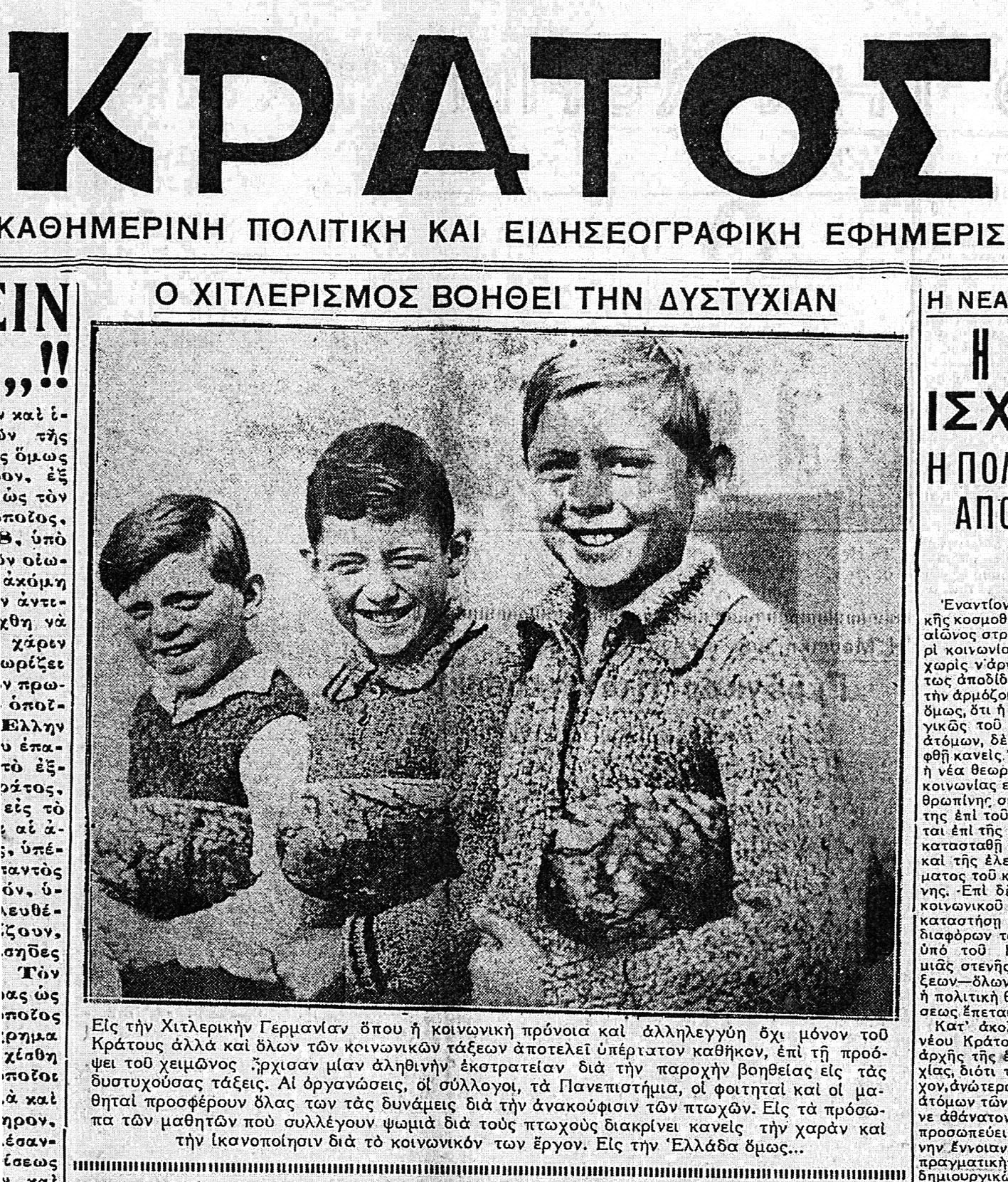 Ιδιαίτερο ενδιαφέρον είχαν και οι ημερήσιες εφημερίδες «Κράτος» και «Νέο Κράτος», που αποτελούσαν όργανο και φιλολογικό βήμα της Οργάνωσης Εθνικών και Κοινωνικών Κατευθύνσεων (ΟΕΚΚ). Οι εφημερίδες αυτές, αφού πρώτα υπέσκαπταν το κοινοβουλευτικό σύστημα ως σαθρό και ξεπερασμένο, παράλληλα εκθείαζαν τις «επιτυχίες» του χιτλερικού καθεστώτος χαρακτηρίζοντας «φαντασιοπληξίες» τις εβραϊκές ανησυχίες για τις ναζιστικές διώξεις: «Σήμερα η Γερμανία έχει πολλούς εχθρούς που τρέμουν την λαϊκή της ενότητα και την παραδειγματική της πειθαρχία. Η εναντίον της προπαγάνδα δρα με παραδειγματικήν επιδεξιότητα».