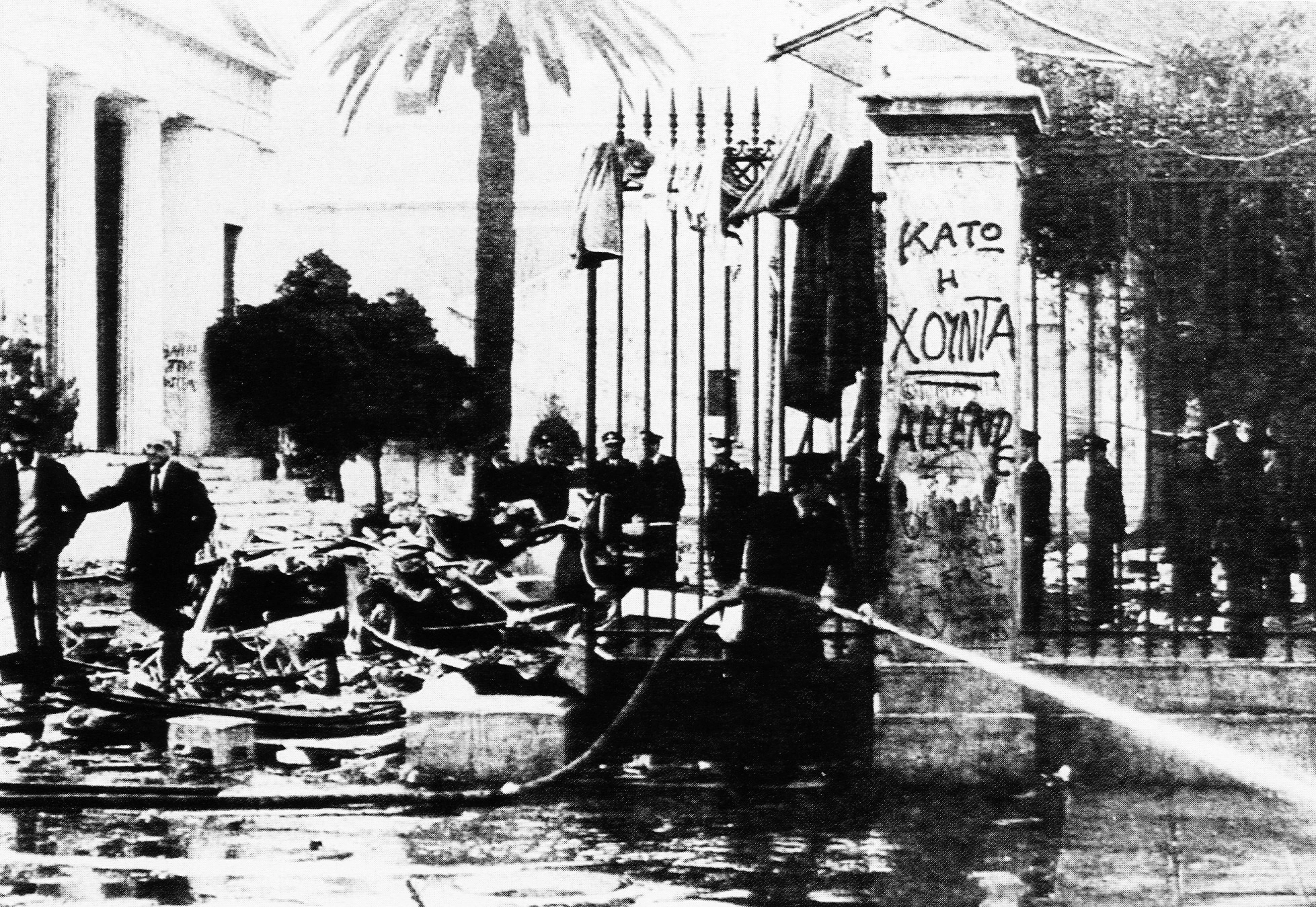 Οι διαπραγματεύσεις στρατού-φοιτητών περί οργανωμένης εκκένωσης του χώρου γίνονται ανάμεσα στους ταξίαρχο Θρασύβουλο Γιοβάνη, υπίλαρχο Μιχαήλ Γουνελά και τους ορισμένους από τη Συντονιστική Επιτροπή Κατάληψης Κυριάκο Σταμέλο και Κώστα Λαλιώτη. Οταν αυτές ολοκληρώνονται στις 2:50 τα μεσάνυχτα και το τανκς ρίχνει την πύλη του Πολυτεχνείου, την ίδια στιγμή κλείνει η παρένθεση της «δημοκρατικοποίησης». Ακολουθεί μια νύχτα κόλασης σε όλη την Αθήνα. Το πρώτο πόρισμα Τσεβά και οι έρευνες που θα ακολουθήσουν μιλούν για 18 έως 24 νεκρούς και 16 άγνωστους «βασίμως προκύπτοντες», εκατοντάδες συλληφθέντες και άγνωστο αριθμό τραυματιών, αφού δεκάδες ήταν εκείνοι που αρνήθηκαν να διακομιστούν σε νοσοκομείο, λόγω του φόβου της σύλληψης.
