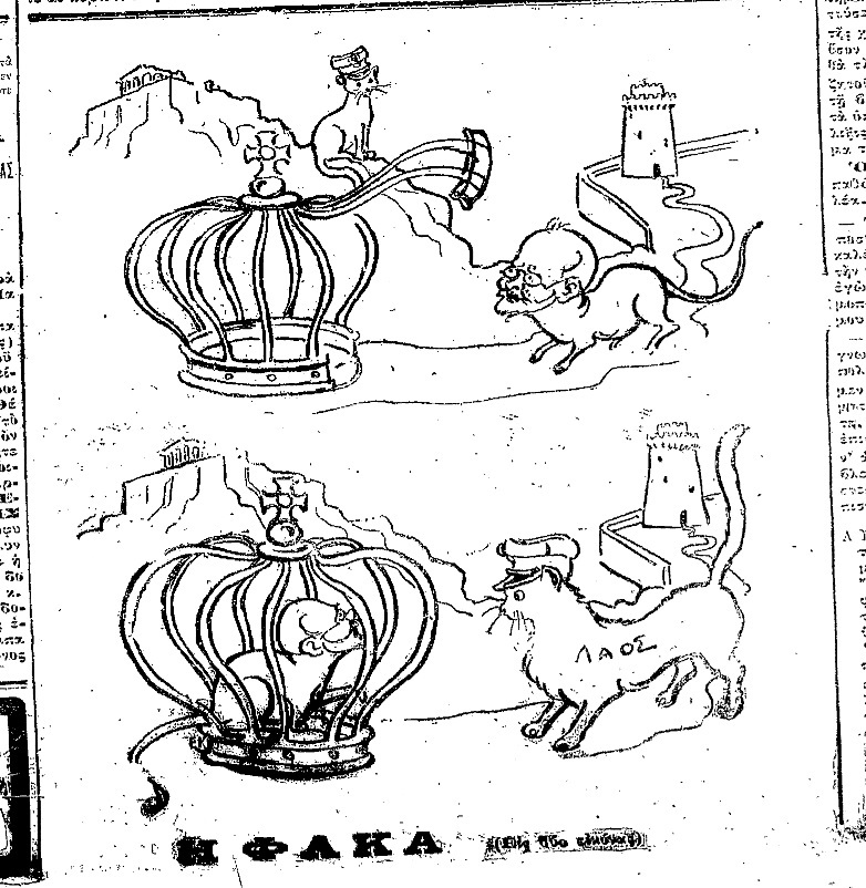 –Να μας ζήσει ο αετός, εύχοντο οι γυναικούλες του λαού, που παρηκολούθον από τα πεζοδρόμια την διαδήλωσιν.