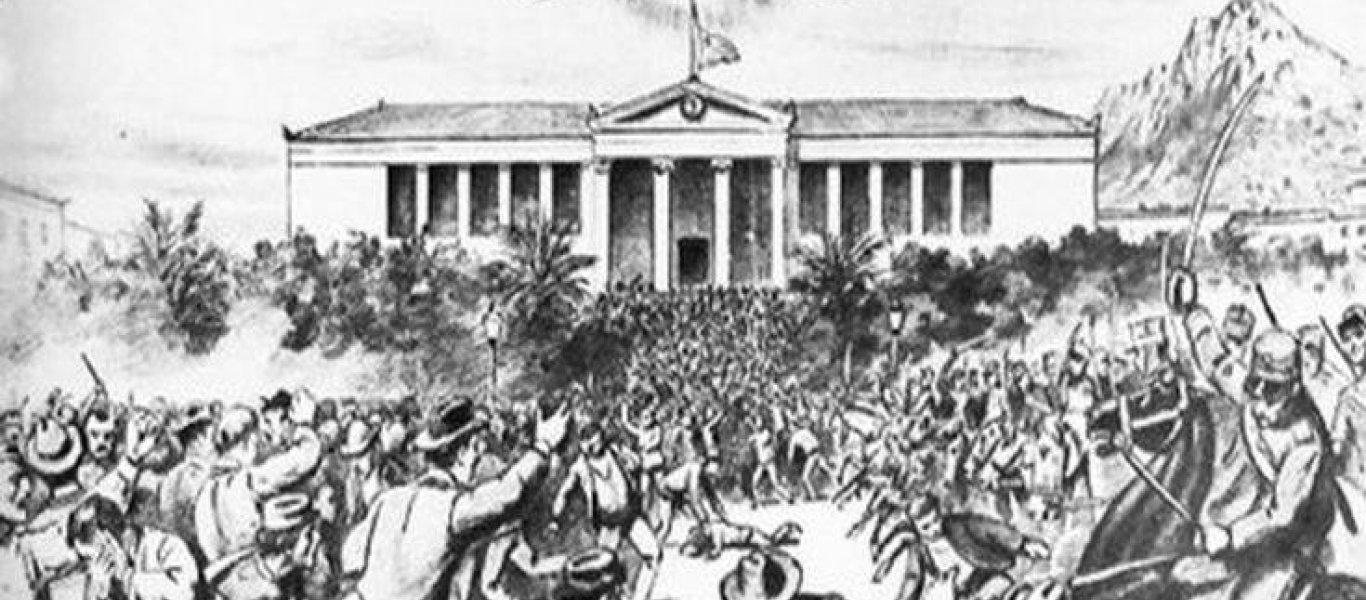 Εκείνον το οποίον δεν εξήγειρε την Κυβέρνησιν και δεν εξύπνησε τον Αγιον Μητροπολίτην, τους μόνους αρμοδίους να θέσουν προ καιρού τέρμα εις την ελεεινήν ταύτην κωμωδίαν, το αναλαμβάνουσιν οι φοιτηταί του Πανεπιστημίου με τας ράβδους των και τας χείρας των και τους γρόνθους των.