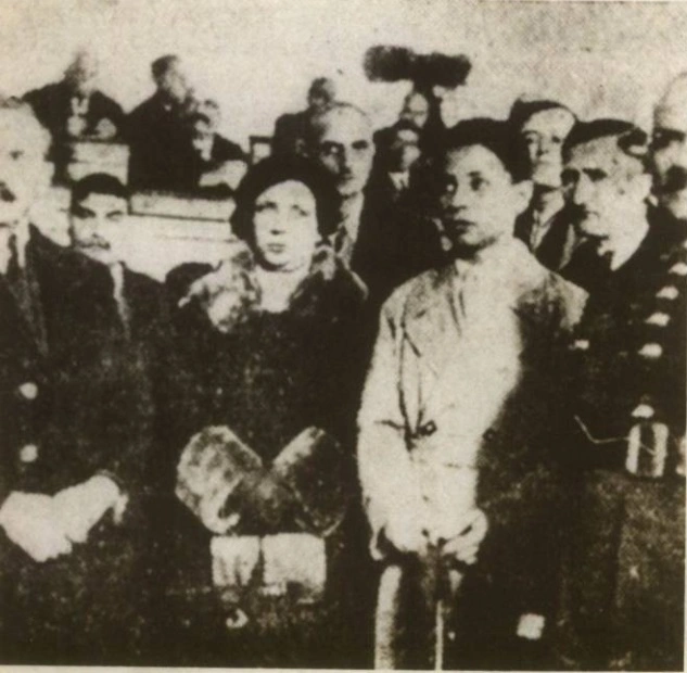 Η δίκη ορίζεται για τον Δεκέμβριο του 1931 στο Κακουργιοδικείο Πειραιά, και κρατά σχεδόν σαράντα ημέρες. Οι επτά κατηγορούμενοι κάθονται βουβοί, έχοντας δίπλα τους δεκαπέντε συνηγόρους. Η δίκη παίρνει περίεργη τροπή, όταν ο πρόεδρος του δικαστηρίου διατάσσει την 24ωρη κράτηση ενός νεαρού θορυβώδους δικηγόρου με την κατηγορία ότι «δυσκολεύει το έργο του δικαστηρίου». Οι συνήγοροι αποχωρούν σε ένδειξη διαμαρτυρίας, με αποτέλεσμα η δίκη να συνεχιστεί με την παρουσία ενός μόνο συνηγόρου, κάτι που προκαλεί τις διαμαρτυρίες του Δικηγορικού Συλλόγου Αθηνών που ζητά από τον ίδιο τον πρωθυπουργό να πάρει θέση για το ζήτημα.