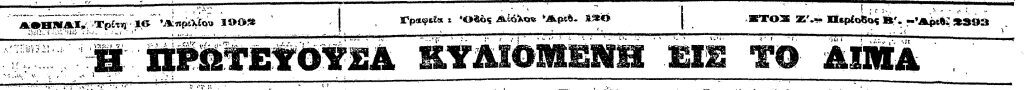 Φυσικά αναφερόμαστε μόνο στα καταγεγραμμένα περιστατικά, που λόγω τύχης δεν προκαλούν τραυματισμούς. Ένα από αυτά αναφέρει η εφημερίδα “Σκρίπτ” που τη Δευτέρα του Πάσχα ου ανακαλύπτει στα γραφεία της μια σφαίρα… :“Εις το γραφείον μας έχουμε μια σφαίρα περιστρόφου. Αυτή παρά τρίχα θα έστελνε εις την αιωνιότητα τον υπηρέτη της κας Σπηλιωτάκη απέναντι από τα γραφεία μας. Ευτυχώς δεν έσπασε παρά το μάρμαρον της κλίμακος”.