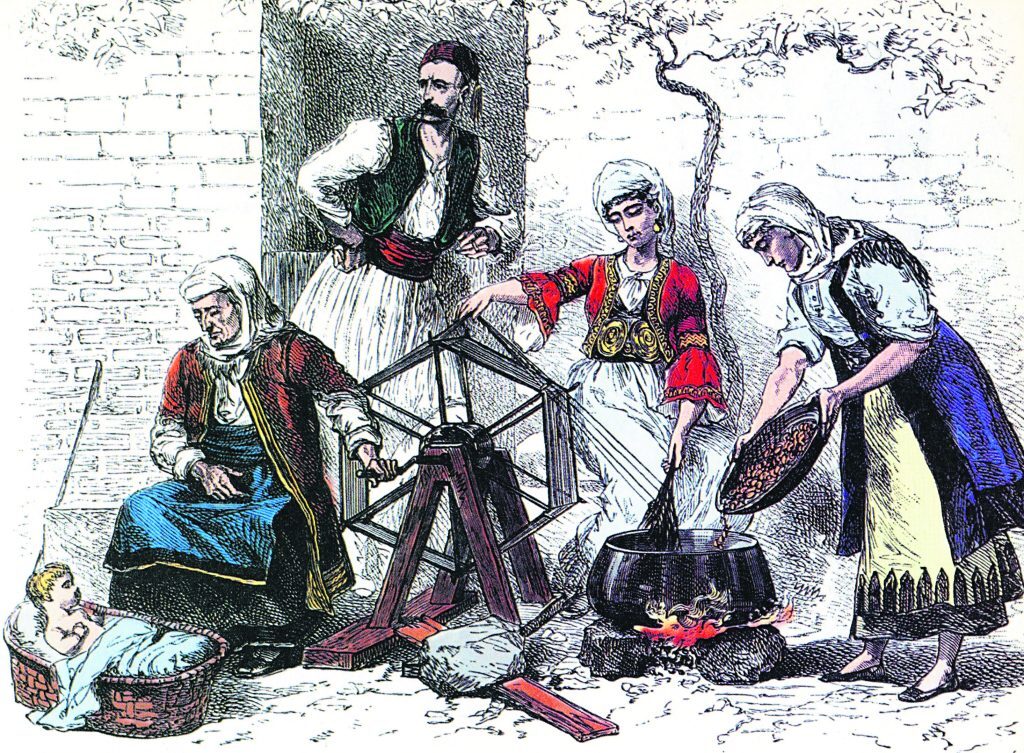 Ανδρική παρέμβαση στο γυναικείο βασίλειο της κουζίνας δεν επιτρέπεται, ενώ οποιαδήποτε νύξη ότι μπορεί ο σύζυγος να μαγειρέψει θεωρείται αδιανόητη ή προσβλητική. Ο ανδρικός ρόλος περιορίζεται σε αυτόν του σχολιαστή του φαγητού ή σ’ εκείνον που γεμίζει τα βαρέλια στο κατώι με μούστο καλώντας φίλους να δοκιμάσουν την καινούργια σοδειά. Ακόμα και η άντληση του νερού από το πηγάδι ή η μεταφορά του από τις δημόσιες κρήνες αποτελεί αποκλειστικά γυναικεία δραστηριότητα.