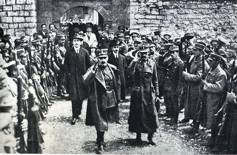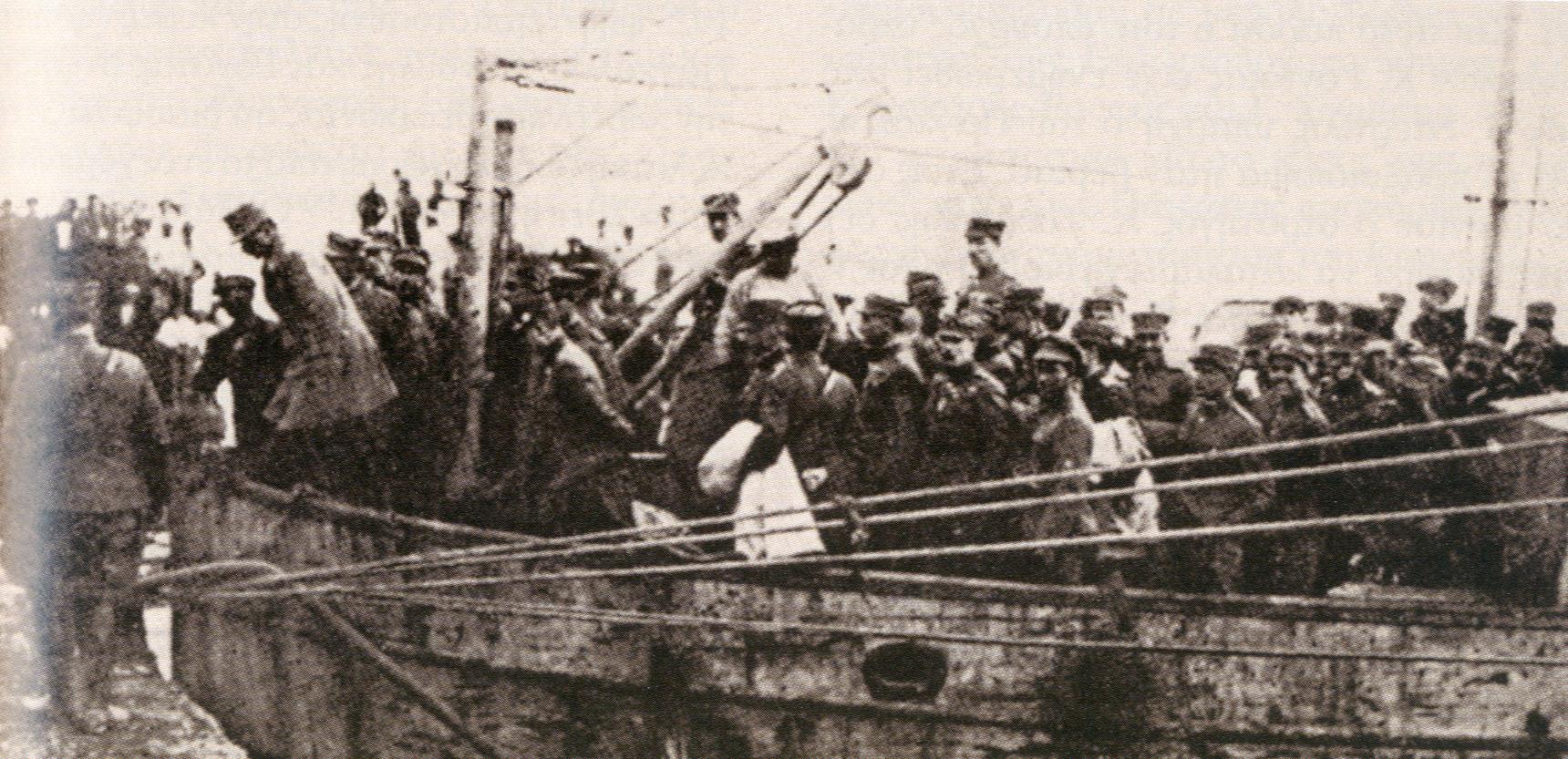 Συλληφθέντες αξιωματικοί του κινήματος μεταφέρονται με βάρκες στον Πειραιά για να δικαστούν.