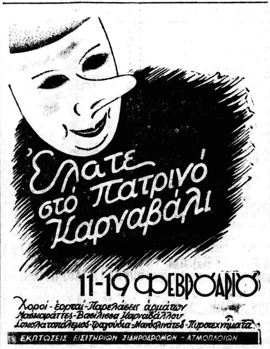 Στον σημαντικότερο αποκριάτικο χορό για το 1939 στην Πάτρα, την παράσταση κλέβει η απαστράπτουσα έφηβη Μελίνα Μερκούρη ως σύζυγος του Παναγή Χαροκόπου: Διαβάζουμε από τον τοπικό Τύπο: «Η κ. Χαροκόπου, παρεπιδημούσα, το γένος Μερκούρη, γίνεται το μεγάλο ερωτηματικό της βραδιάς. Εχει στιλ Αμερικανίδος αριστοκράτισσας και στα μάτια σπάνια σμαράγδια. Χορεύουν με τον άνδρα της και χίλια μάτια καμαρώνουν το κομψό ζευγάρι που φιλοξενεί η πόλις μας». Φυσικά όλη η προσπάθεια αναβίωσης του Καρναβαλιού πέφτει στο κενό, αφού αμέσως μετά η τριπλή κατοχή και ο Εμφύλιος σαρώνουν τα πάντα στη χώρα.