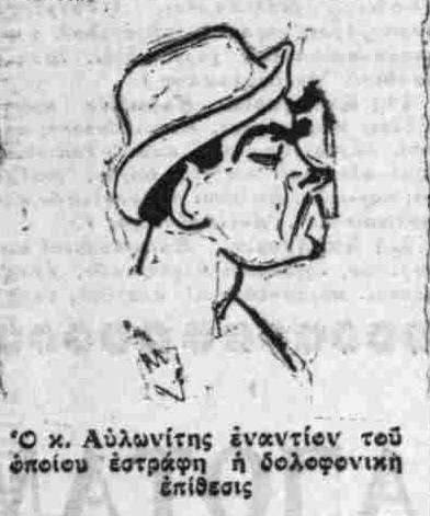 Στις δηλώσεις του ο Βασίλης Αυλωνίτης περιγράφει τη δολοφονική επίθεση στη διάρκεια που παίζει το νούμερο του “ Είδα να ορμά στη σκηνή ένας μαγκουροφόρος ο οποίος μου επετέθει. Καθώς έκανα να φύγω δια να σωθώ βλέπω δεύτερον με μιαν κουμπούραν, που εσκόπευε προς το μέρος μου. Μόλις επρόλαβα να σκύψω και η σφαίρα διήλθεν επάνω από το κεφάλι μου. Ετράπην εις φυγήν ενώ δευτέρα σφαίρα ευρήκε τον ατυχή μηχανικόν της σκηνής Μωραίτην. Το πως κατόρθωσα να φύγω είναι αληθής τραγωδία. Πήδησα κάτω και εκρατήθην αλλά στο τέλος εσώθηκα”.