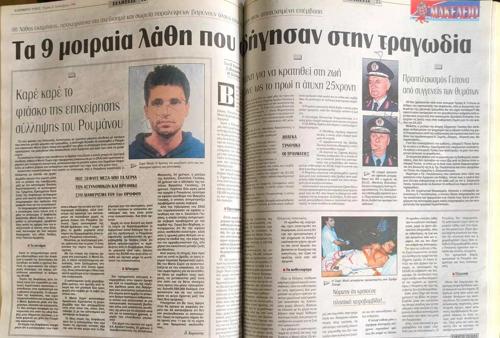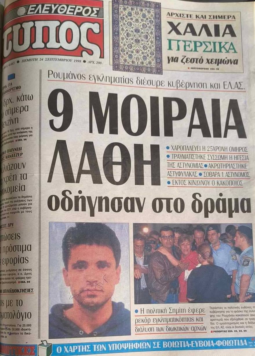 Ο Ρουμάνος δραπέτης Σορίν Ματέι πριν από 21 χρόνια σαν σήμερα, εισέβαλε σε διαμέρισμα πολυκατοικίας στην οδό Νιόβης στα Κάτω Πατήσια και κράτησε ομήρους τους τέσσερις ενοίκους με την απειλή χειροβομβίδας.