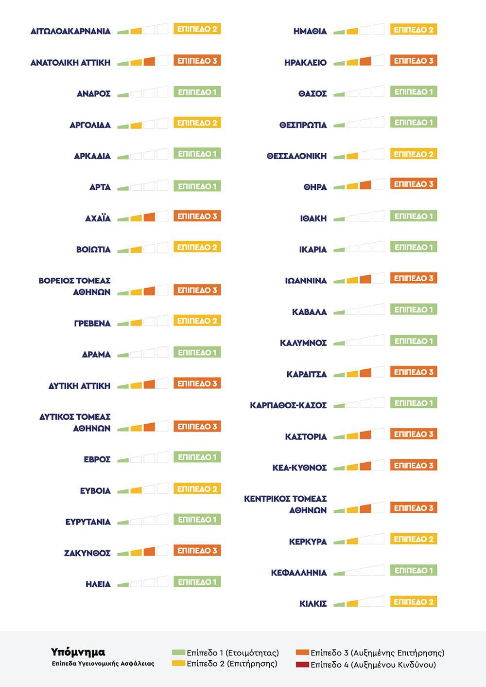 Για να δείτε τα επίπεδα ανά περιφέρεια πατήστε ΕΔΩ