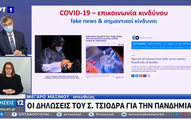 Για τα fake news είπε: «Φυσικά και η δημόσια υγεία σκέφτεται τις βάρβαρες συνέπειες ενός απαγορευτικού, αλλά αυτή τη στιγμή προέχει το άμεσο της προστασίας της δημόσιας υγείας. Δεν είχαμε ξανακούσει στην ιστορία διακομιδές από κράτη -πέραν της γρίπης το 2009-2010. Το βλέπουν και οι γιατροί μας, που είναι κουρασμένοι αλλά ήρωες και είμαστε δίπλα τους. Είναι μια πανδημία, συμπεριφέρεται έτσι γιατί δεν υπάρχει ανοσία, τα πράγματα θα αλλάξουν όταν θα υπάρχουν εμβόλια.