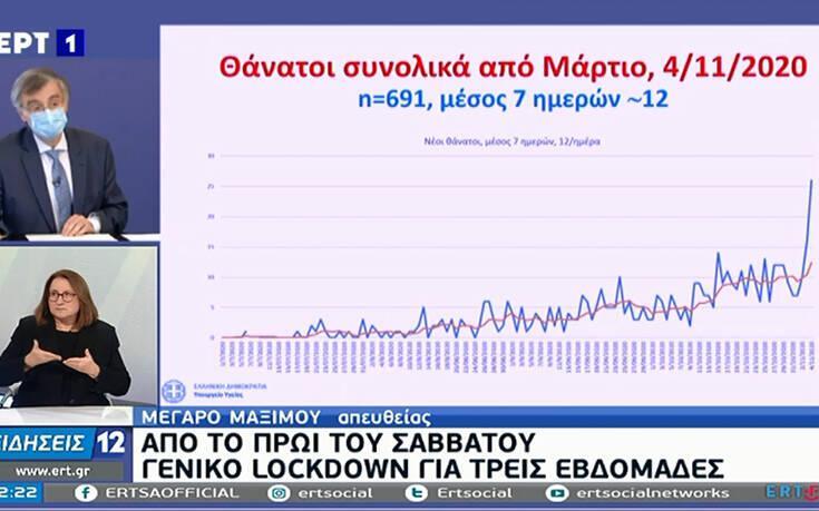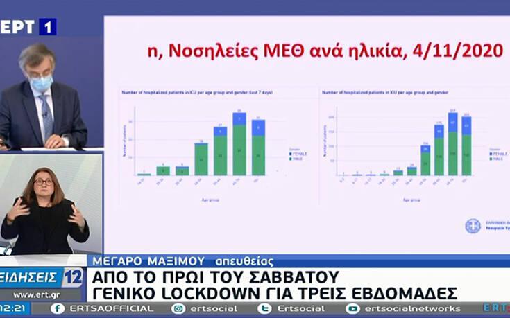 Τις πολιτικές αποφάσεις τις παίρνει η κυβέρνηση και εγώ προσωπικά αλλά τα επιστημονικά δεδομένα είναι αδιαπραγμάτευτα. Από τις 6 το πρωί του Σαββάτου και μέχρι τις 30 Νοεμβρίου η χώρα μπαίνει σε lockdown. Γυμνάσια και λύκεια θα μείνουν κλειστά. Σημαντική διαφορά σε σχέση με τον Μάρτιο, είναι ότι νηπιαγωγεία, οι παιδικοί σταθμοί, τα δημοτικά σχολεία και τα σχολεία ειδικής αγωγής θα είναι ανοιχτά».