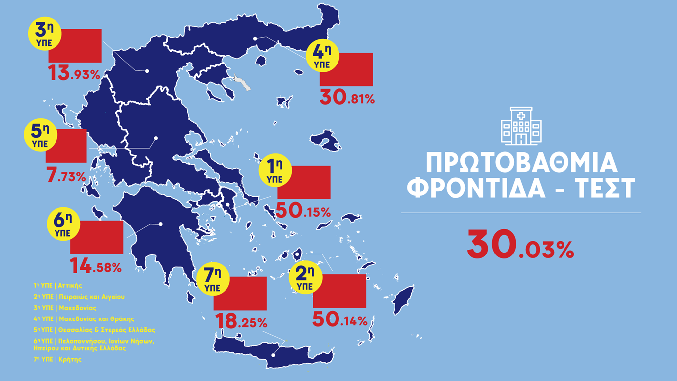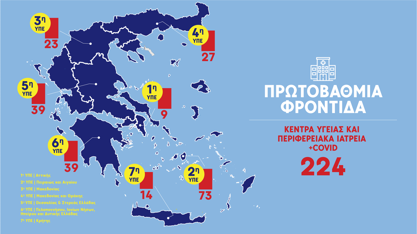 Όπως είπε, εξάλλου, ο κ. Κικίλιας συνολικά 224 Κέντρα Υγείας και Περιφερειακά Ιατρεία Covid 19 εισήλθαν στη «μάχη» κατά του κορωνοϊού. Παράλληλα, στην Πρωτοβάθμια Φροντίδα Υγείας γίνεται το 30,03% των συνολικών τεστ έναντι του κορωνοϊού. Αυτό σημαίνει πως πλέον υπάρχει μεγάλη βοήθεια προς τα νοσοκομεία και τα ΤΕΠ, καθώς τα τεστ διενεργούνται πλέον σε σημαντικό ποσοστό στα Κέντρα Υγείας.