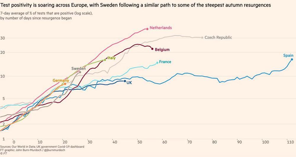 «Μέχρι τώρα, η στρατηγική της Σουηδίας αποδεικνύεται μεγάλη αποτυχία», δηλώνει στους «FT» η Λένα Άινχορν, Σουηδή ιολόγος και από τις πιο σφοδρές πολέμιους των χειρισμών της κυβέρνησης. «Πριν από τέσσερις ημέρες, είχαμε οκτώ φορές περισσότερα κρούσματα κατά κεφαλήν από τη Φινλανδία και 50% περισσότερα από τη Νορβηγία. Υποτίθεται ότι αυτές οι χώρες θα ήταν σε χειρότερη κατάσταση από εμάς το φθινόπωρο γιατί εμείς θα είχαμε ανοσία».
