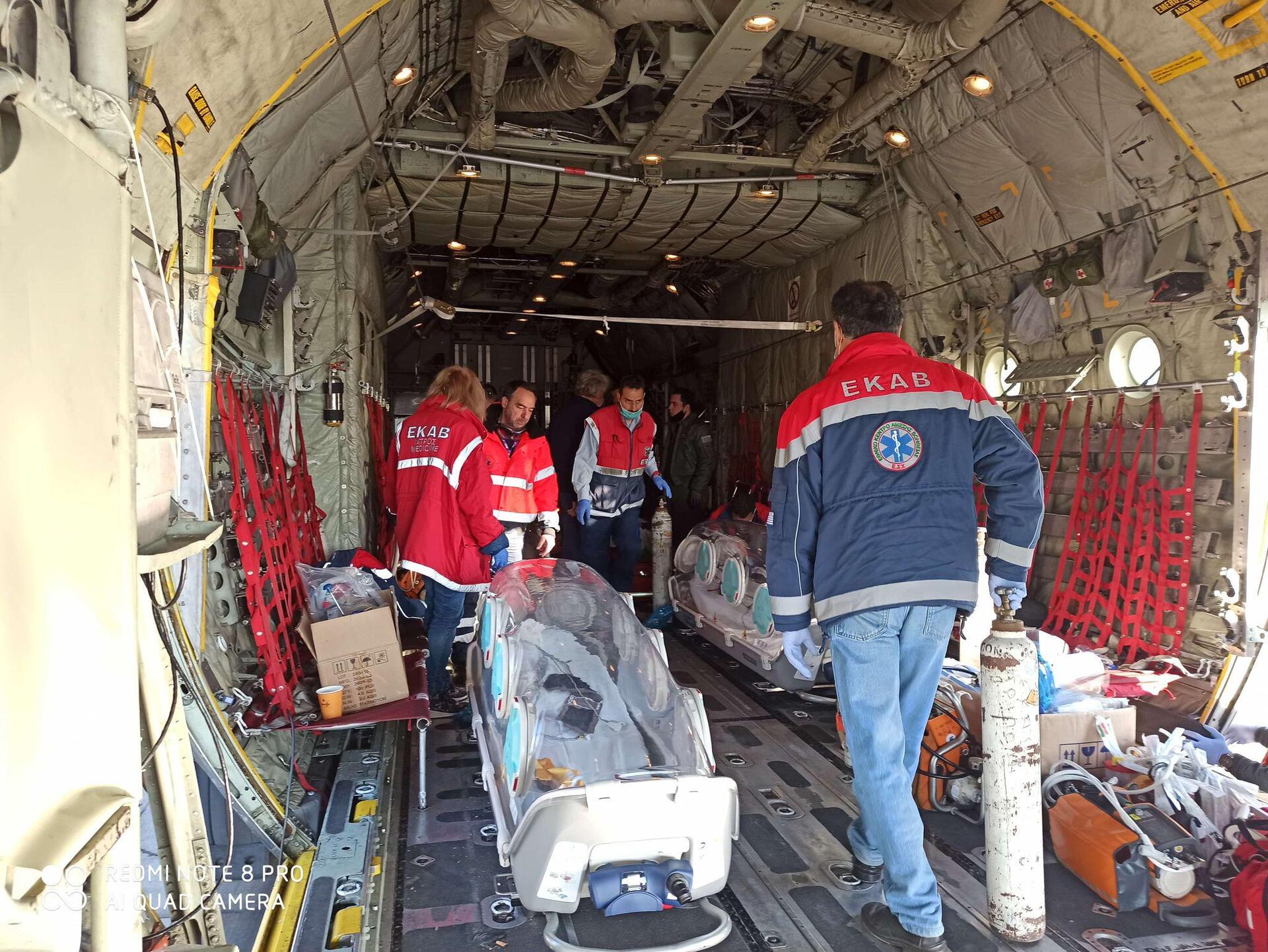 Σήμερα το πρωί στις 10:00 απογειώθηκε πτητική ομάδα του τμήματος Αεροδιακομιδών ΕΚΑΒ αποτελούμενη από τρεις ιατρούς και τρεις διασώστες με C-130 προκειμένου να διακομίσουν τρία διασωληνωμένα περιστατικά Covid-19 από το αεροδρόμιο της Καβάλας στην Αθήνα.