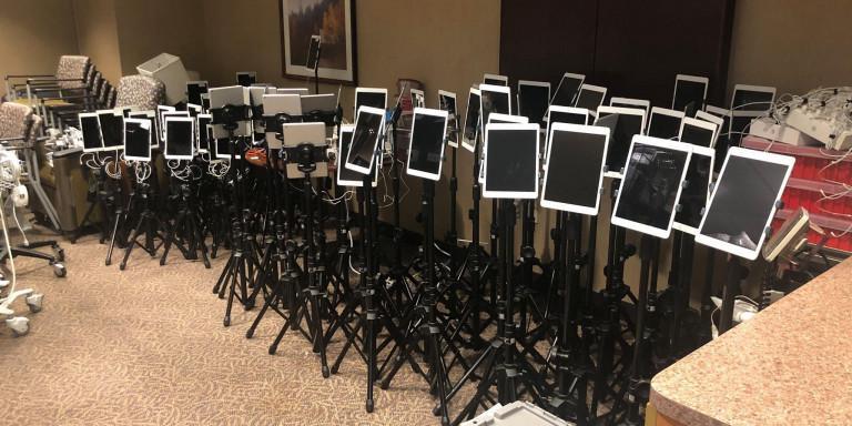 These are iPad stations being prepared for virtual ICU end of life visits by a palliative care doc I know. Jesus. pic.twitter.com/lIgbg0FhaL