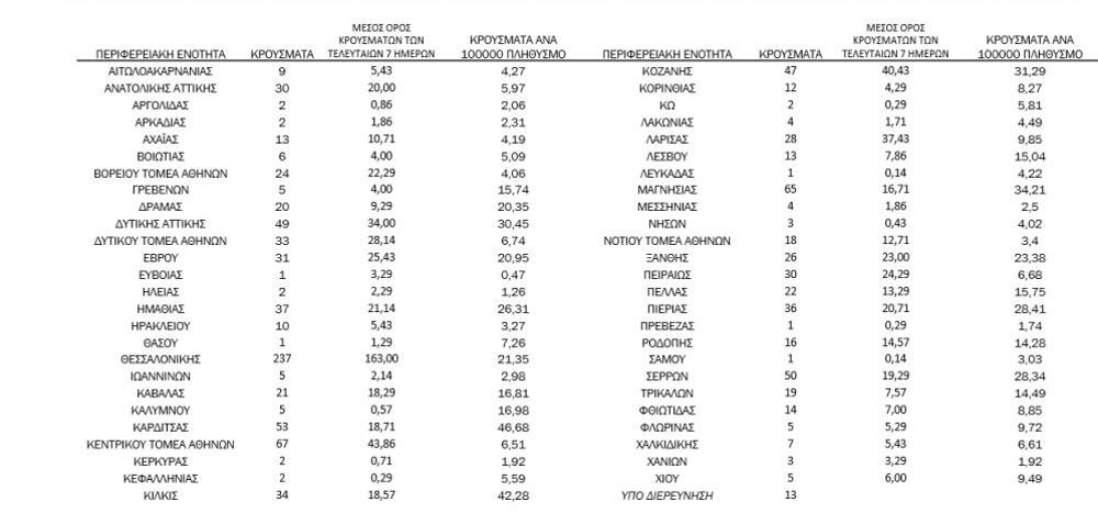 Τα κρούσματα στην Αττική επιμερίζονται ως ακολούθως, κατά την ημερήσια επιδημιολογική έκθεση: