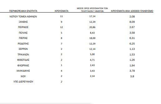 Αττική και Θεσσαλονίκη έχουν τα περισσότερα με 101 και 70 κρούσματα αντίστοιχα. Δείτε παρακάτω αναλυτικά τα στοιχεία, για το πού εντοπίστηκαν τα υπόλοιπα:
