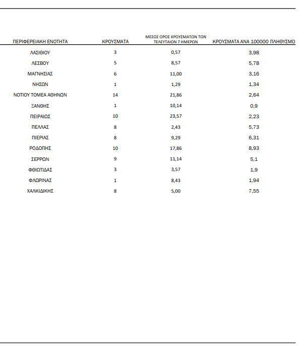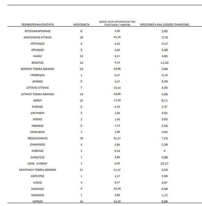 Παράλληλα, 78 κρούσματα εντοπίστηκαν στη Θεσσαλονίκη. Αναλυτικά η κατανομή των κρουσμάτων, σύμφωνα με τα στοιχεία του ΕΟΔΥ: