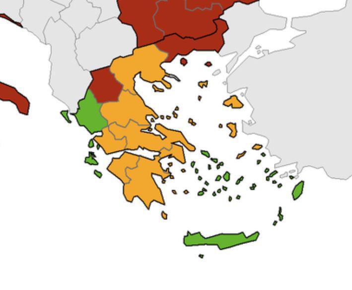 Συγκριτικά, μόνο μια μικρή επαρχία της νότιας Νορβηγίας βρίσκεται επίσης στο «πράσινο». Η υπόλοιπη Ελλάδα, πλην της Δυτικής Μακεδονίας που βρίσκεται στο «κόκκινο», είναι χρωματισμένη «πορτοκαλί», μαζί με τη Φινλανδία, μεγάλο μέρος της Νορβηγίας και την Κορσική.