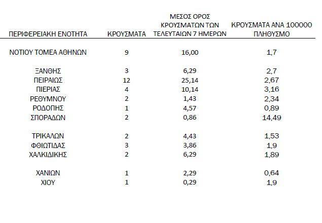 Συγκεκριμένα στην Ανατολική Αττική βρέθηκαν 18 νέα κρούσματα, στον Βόρειο Τομέα Αθηνών επίσης 18, στην Δυτική Αττική 10, στον Δυτικό Τομέα Αθηνών 15, στον Κεντρικό Τομέα Αθηνών 12, στον Νότιο Τομέα Αθηνών 9, ενώ στον Πειραιά εντοπίστηκαν ακόμα 12 κρούσματα κορωνοϊού.