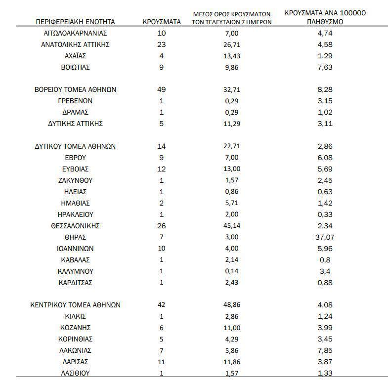 Κεντρικού Τομέα Αθηνών: 42 κρούσματα