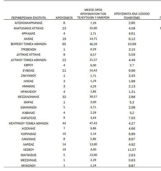 Κεντρικού Τομέα Αθηνών: 44 κρούσματα