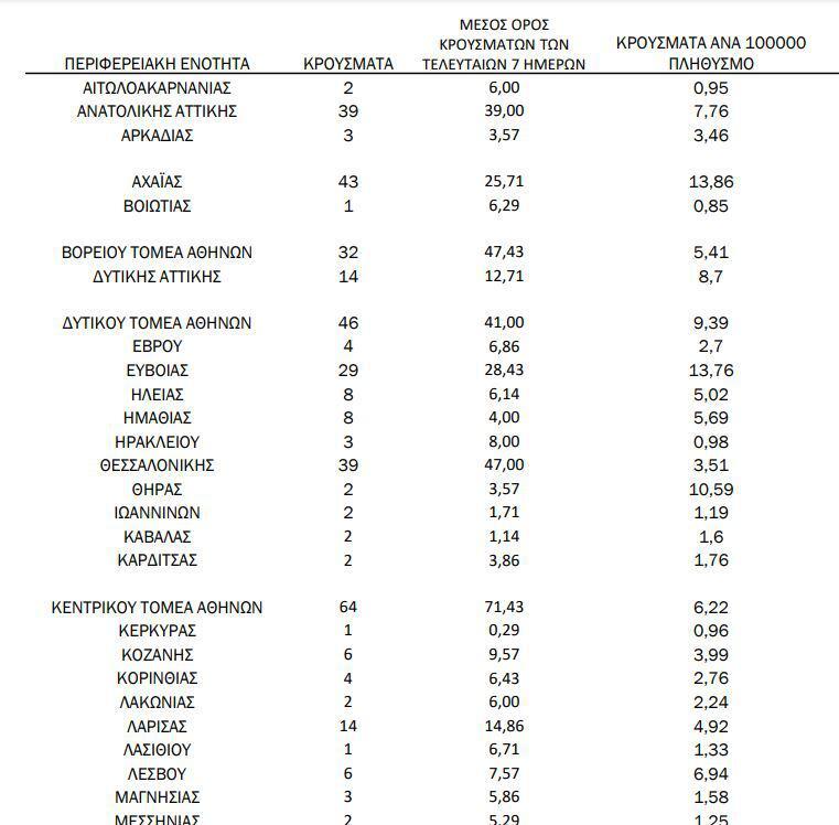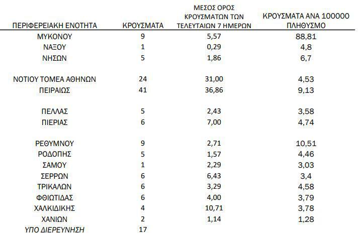 Τέλος, έχουμε 33 νέους θανάτους από τη νόσο COVID-19, φθάνοντας τους 5829 θανάτους συνολικά στη χώρα, εκ των οποίων 3427 (58.8%) άνδρες. Η διάμεση ηλικία των θανόντων συμπολιτών μας ήταν τα 79 έτη και το 95.5% είχε κάποιο υποκείμενο νόσημα ή/και ηλικία 70 ετών και άνω.