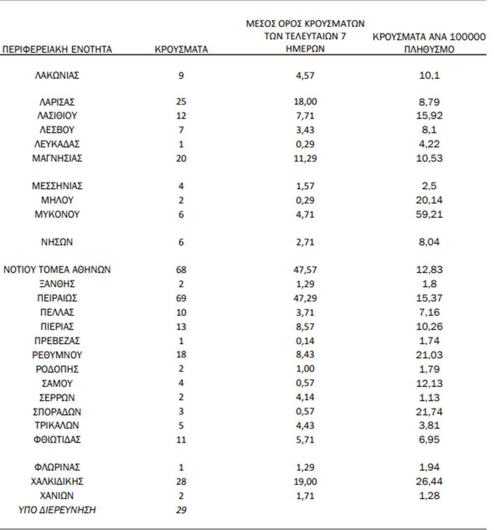 Παράλληλα, η Αχαΐα που προβληματίζει τους ειδικούς έχει σήμερα 78 νέες μολύνσεις με τον ιό.